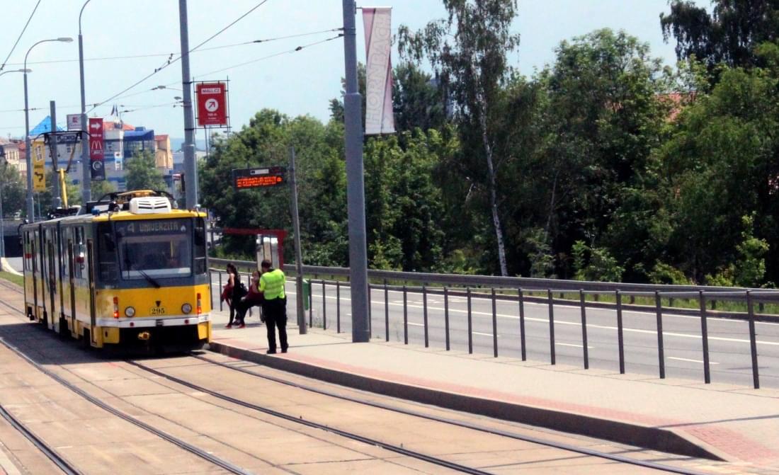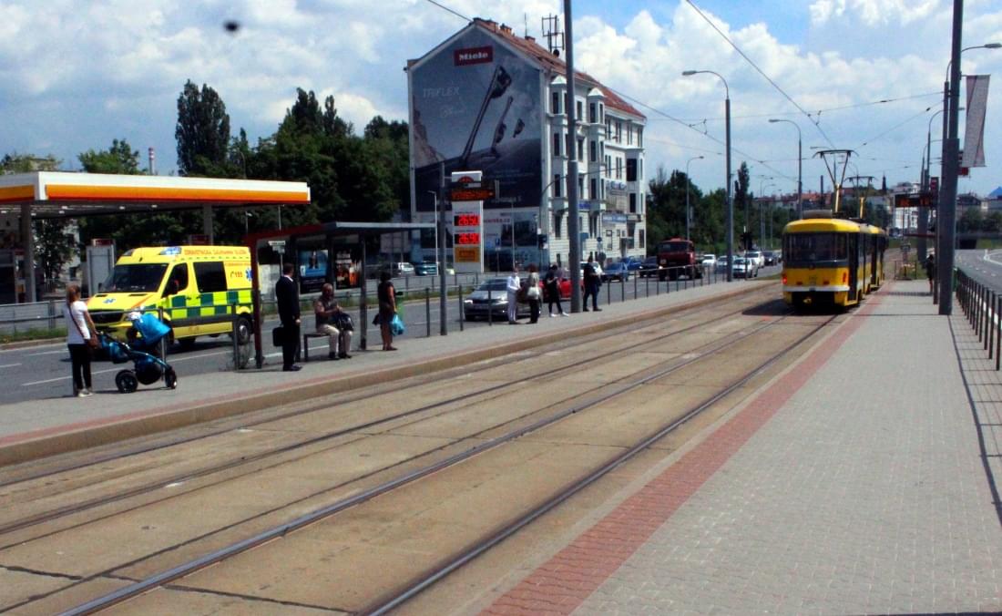 Dnes před půl druhou odpoledne došlo na zastávce tramvaje Pod Záhorskem ke střetu tramvaje linky číslo 4 se starší ženou.