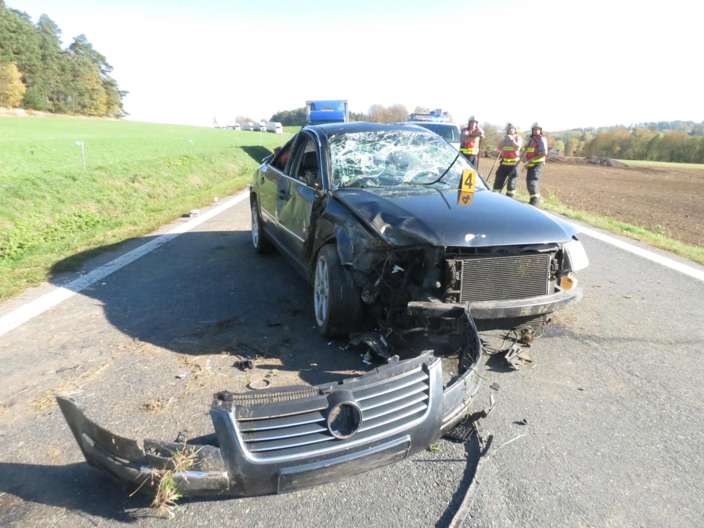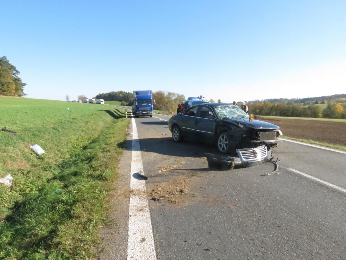 Nehoda úplně uzavřela komunikaci směrem na Horažďovice, provoz byl