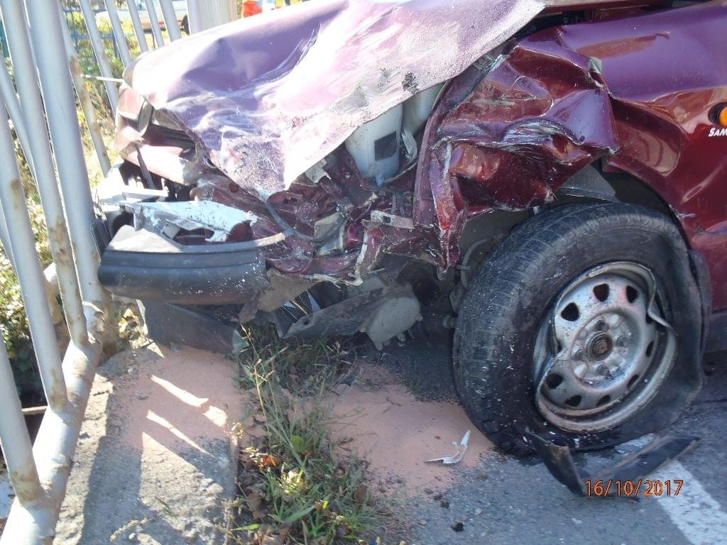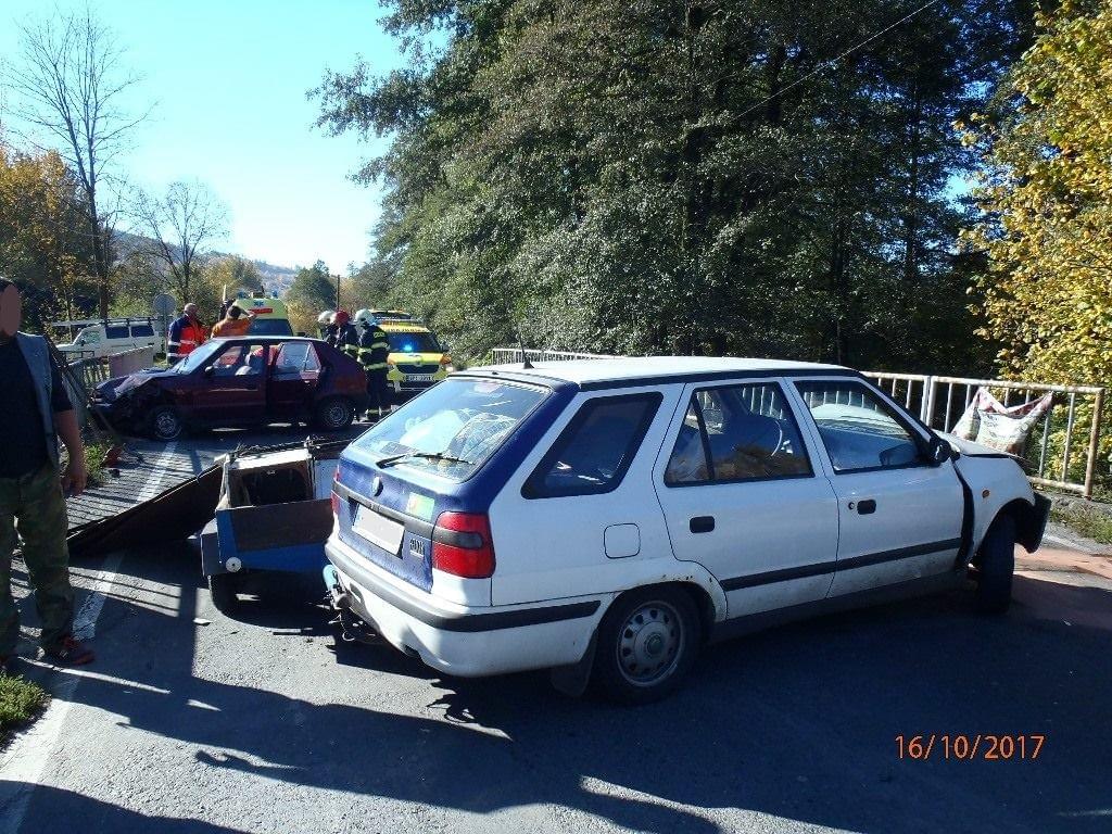 srážce. Po střetu bylo jedno vozidlo odraženo na zábradlí mostu přes