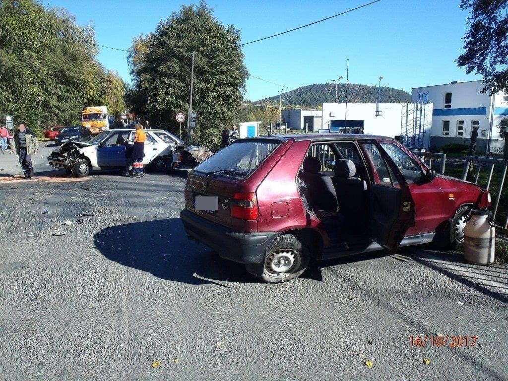vyjeli policisté, hasiči a záchranáři v Sušici do ulice Pražská k dopravní nehodě dvou osobních