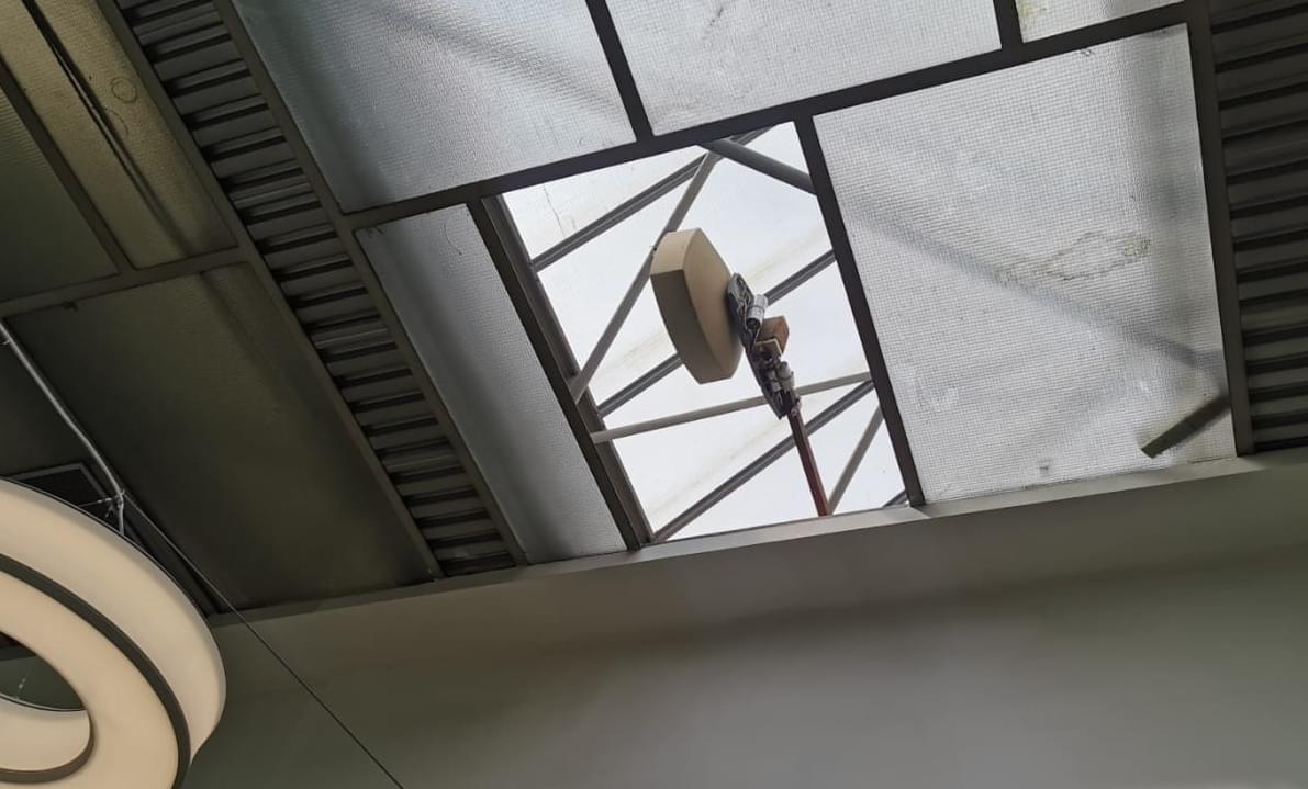 Ukázalo se, že se vysypal jeden ze skleněných stropních panelů nad halou, druhý pouze praskl, ale zůstal v celku. Za poškozením skleněné střechy pak byl vskutku kuriózní důvod. Když totiž strážný z bezpečnostní služby Sany Guard, která nákupní centrum střeží, vyrazil k místu zřícení skla, zjistil, že se na proskleném stropě pohybovala dívka s mladým mužem. Dívka se jedním z panelů probořila a než jí její partner vytáhl, visela nad halou dolní polovinou těla.