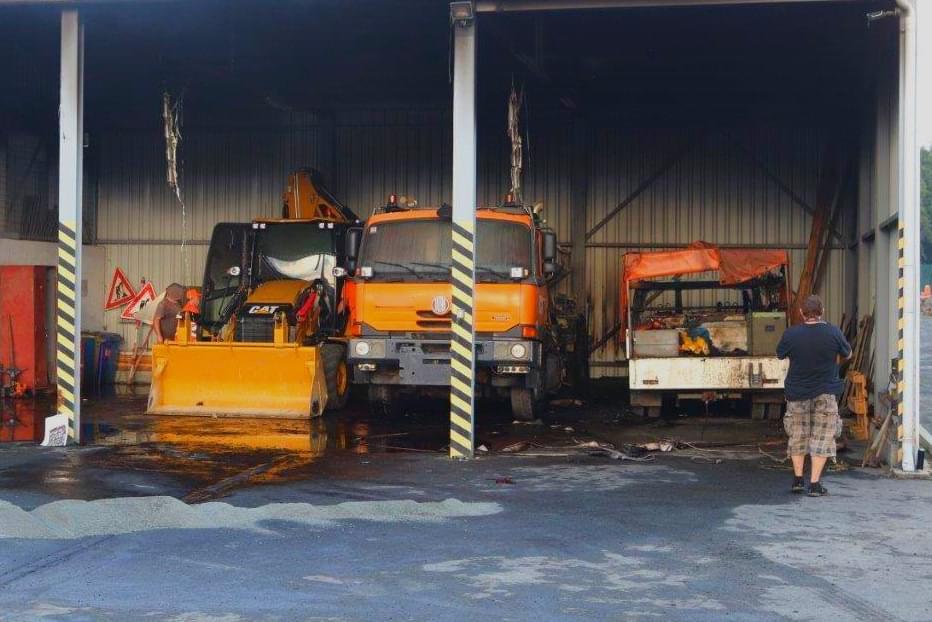 V areálu cestářů ve Kdyni došlo dnes v brzkých ranních hodinách k požáru vozidla Tatra s nástavbou k opravování vozovek, kterým cestáři aplikují tryskanou směs rozehřátého pojiva a štěrku.