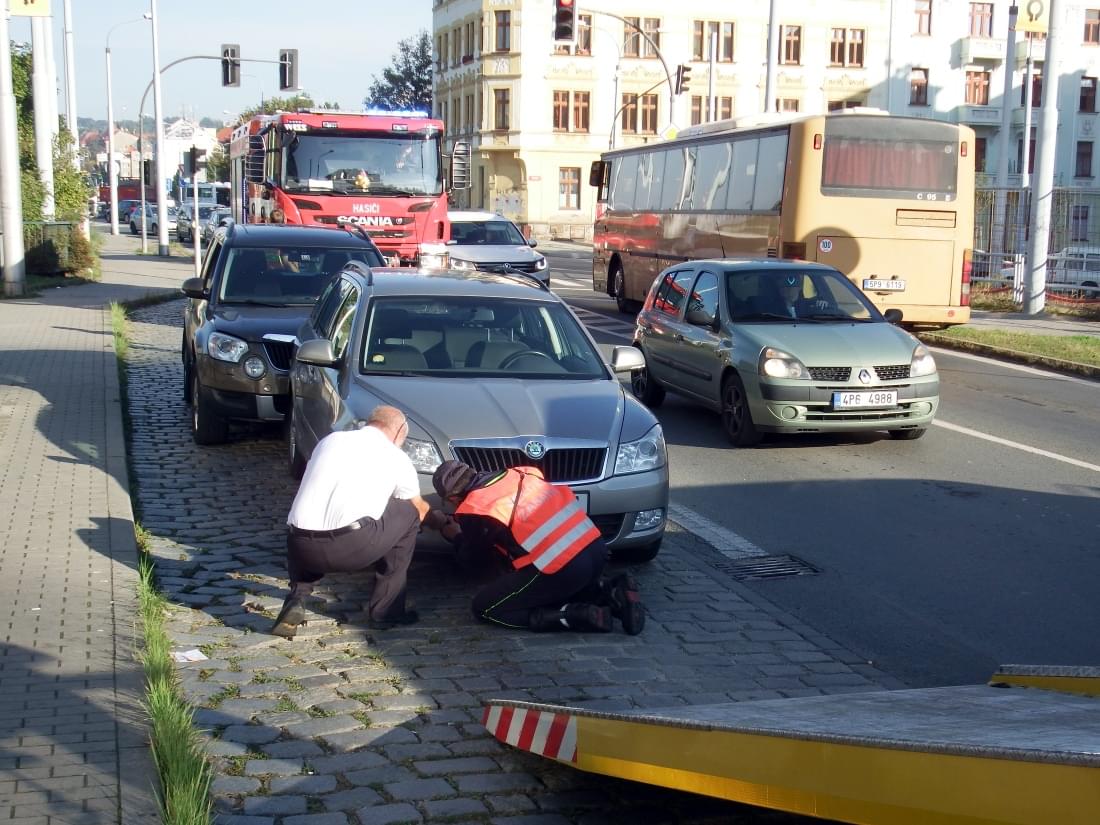K drobné dopravní nehodě došlo dnes před půl devátou ráno v ulici Otýlie Benýškové v Plzni, kde po zadním nárazu zůstaly dva vozy Škoda. Tato nehoda se obešla bez zranění a obešla by se zřejmě i bez asistence záchranných složek, ale auta se do sebe zaklínila tak pevně, že nebylo možné je od sebe oddělit. Pracovník odtahové služby si tak byl nucen na místo zavolat hasiče. Ti museli pevně v sobě vězící Škodovky nakonec odtrhnout pomocí navijáků odtahového a hasičského vozu.
