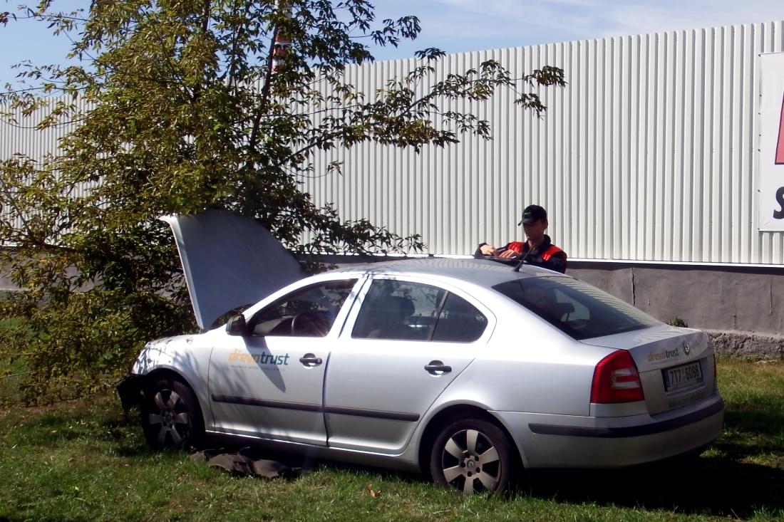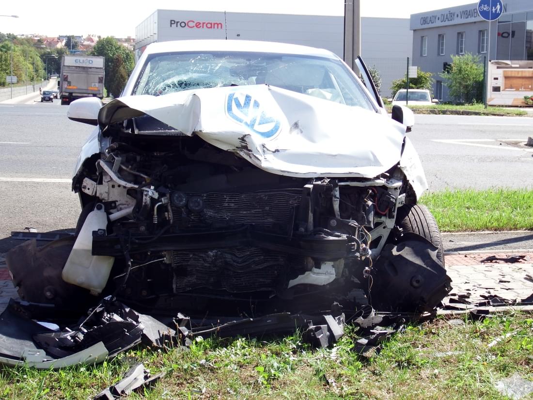 Podle informací z místa zde řidič vozu Škoda vjížděl do křižovatky z Chrástecké ulice a odbočoval vlevo s tím, že ho řidič, přijíždějící zprava po Jateční do odbočovacího pruhu, pouští. Vjel tedy do křižovatky, ale nedal přednost vozu Renault, který přijížděl také zprava, průběžným pruhem. Došlo ke střetu vozů, jehož následkem byla zcela zdemolována přední část Renaultu. Škoda po nárazu pokračovala přes chodník na trávník, kde nejprve srazila vzrostlý stromek a po ujetí asi třiceti metrů se zastavila o další.