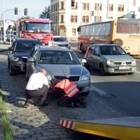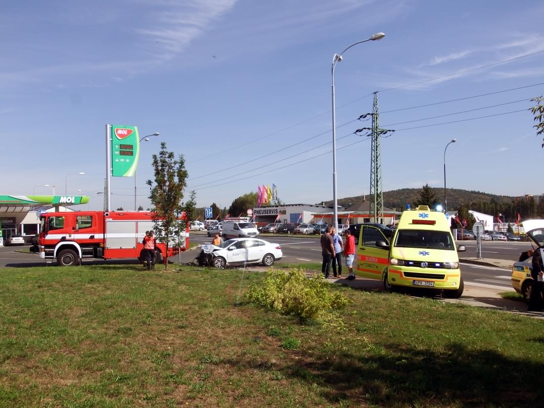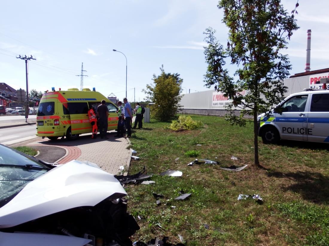 Titíž hasiči pak vyjížděli společně s policisty a záchranáři na křižovatku ulic Jateční a Chrástecká v Plzni, kde došlo ke střetu dvou vozů před polednem.