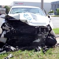 Řidič Renaultu může mluvit o obrovském štěstí, při střetu se mu totiž ze zadní sedačky uvolnila dětská autosedačka, která přeletěla až k přednímu sklu, které rozbila. Takovýto předmět se při autonehodě může stát doslova smrtícím projektilem.