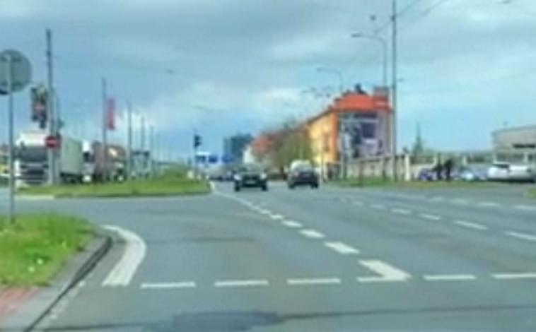 Řidič stále v protisměru projel i křižovatku u Hornbachu, kde ho zachytila kamera z vozu další svědkyně. "Jel jako šílenec celou dobu v protisměru. Chvíli poté jeli za ujíždějícím vozem pak jeli policisté s majáky, ale ty natočené nemám, protože ti již jeli po té správné straně," uvedla nám žena, která nám také poskytla video.