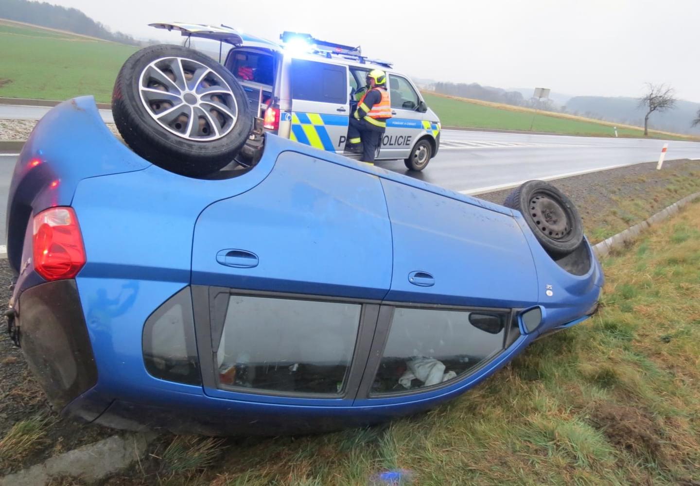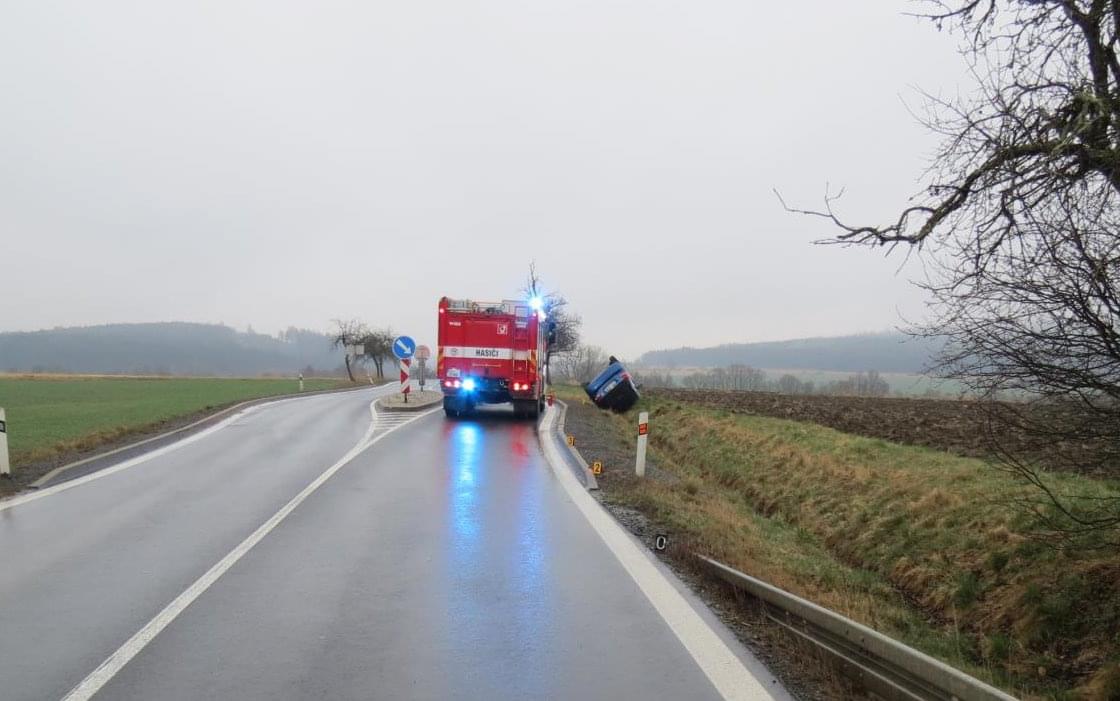 Včera krátce před šestou hodinou večer došlo mezi Dolcemi a Přešticemi k dopravní nehodě, po které osobní vůz skončil v příkopu převrácený na střeše.