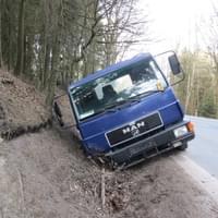 Nákladní vozidlo MAN sice mělo za volantem řidiče, ale otázkou je, kolik toho muž vnímal, když mu v krvi putovalo neuvěřitelné množství alkoholu. Nevyhnutelně muselo dojít k dopravní nehodě a jen shoda náhod rozhodla, že nákladní vozidlo nesmetlo protijedoucí vůz, ale jen skončilo v příkopu.