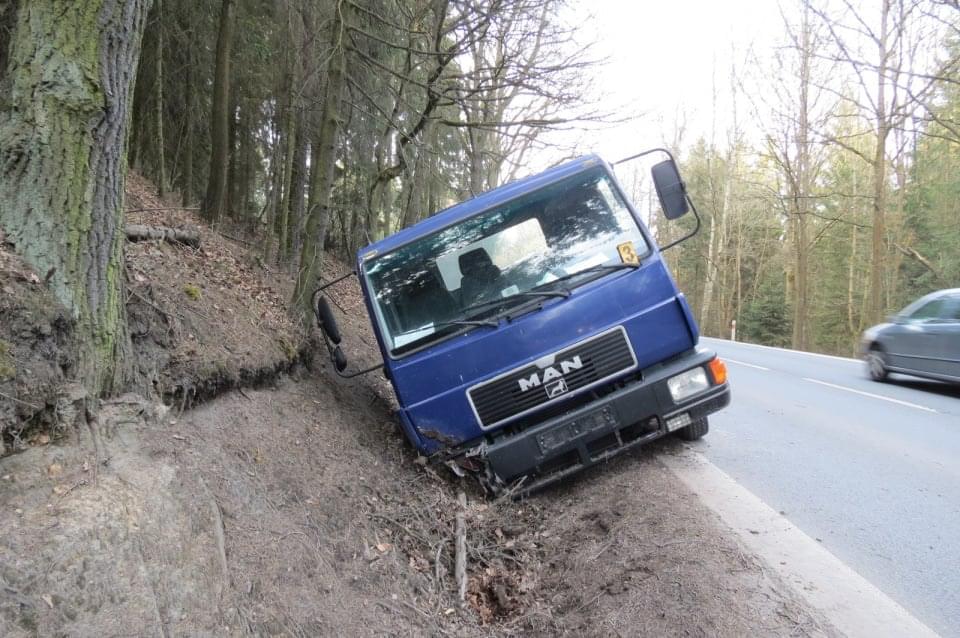 Nákladní vozidlo MAN sice mělo za volantem řidiče, ale otázkou je, kolik toho muž vnímal, když mu v krvi putovalo neuvěřitelné množství alkoholu. Nevyhnutelně muselo dojít k dopravní nehodě a jen shoda náhod rozhodla, že nákladní vozidlo nesmetlo protijedoucí vůz, ale jen skončilo v příkopu.