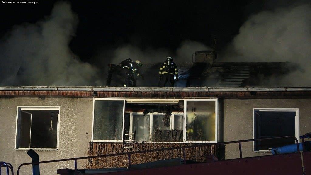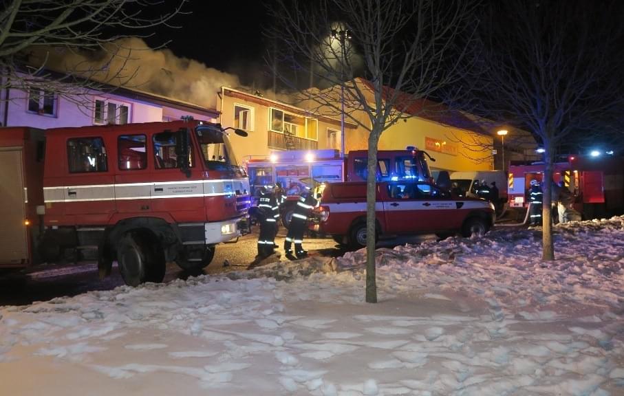 Na požárem zasaženou budovu přímo navazovaly z pravé i levé strany rodinné domy. Oba se hasičům podařilo před ohněm ochránit.