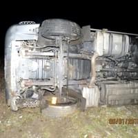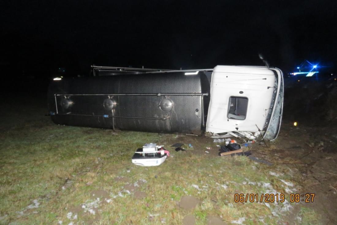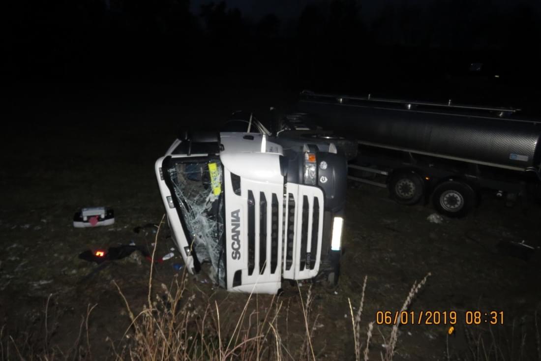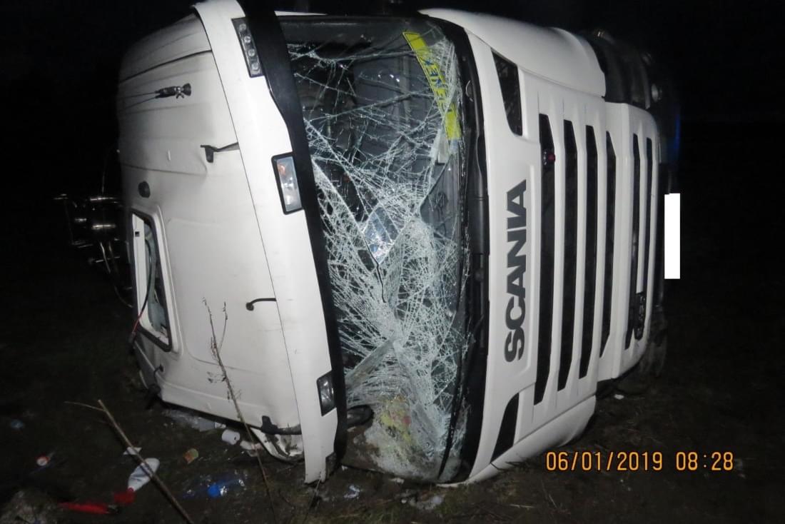 "Sedmačtyřicetiletý řidič nákladního vozidla Scania s přívěsem jel ve směru jízdy na Čečovice, nepřizpůsobil rychlost jízdy, při projíždění levotočivé zatáčky se na namrzlém povrchu vozovky stalo vozidlo neovladatelným a řidič s ním vyjel vpravo mimo komunikaci, kde havaroval v silničním příkopu," popsala tisková mluvčí policie.