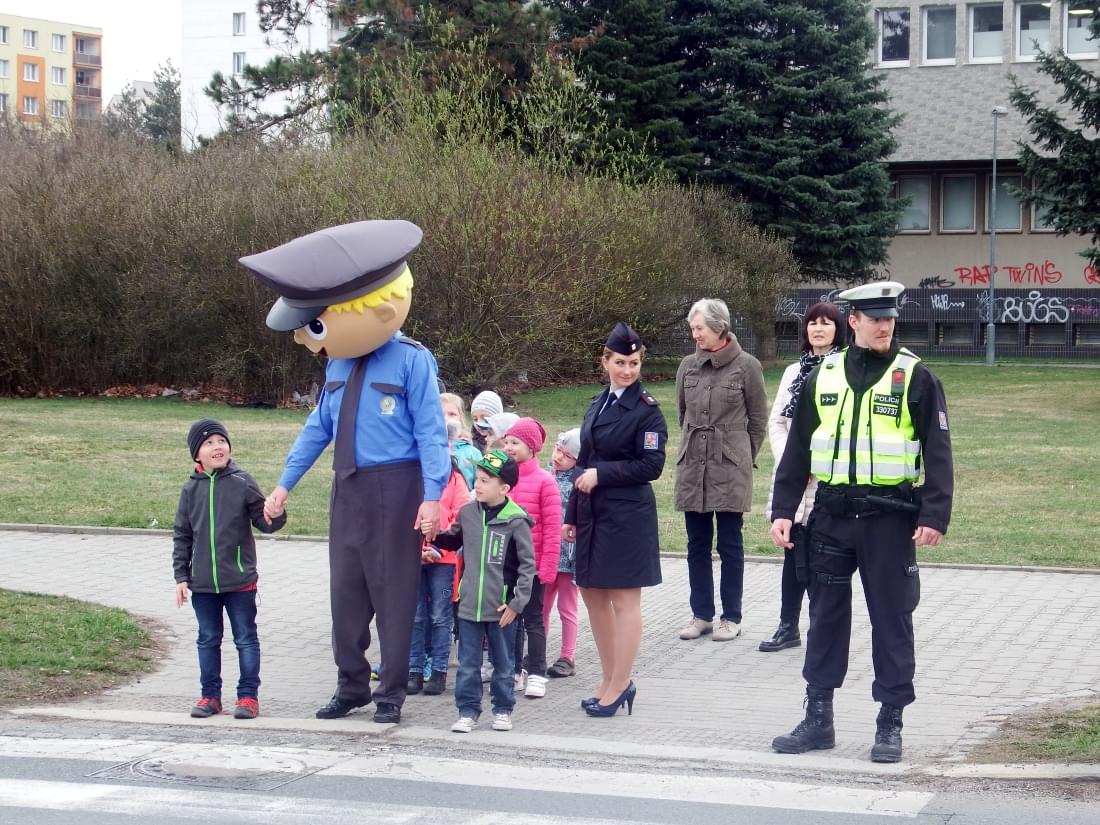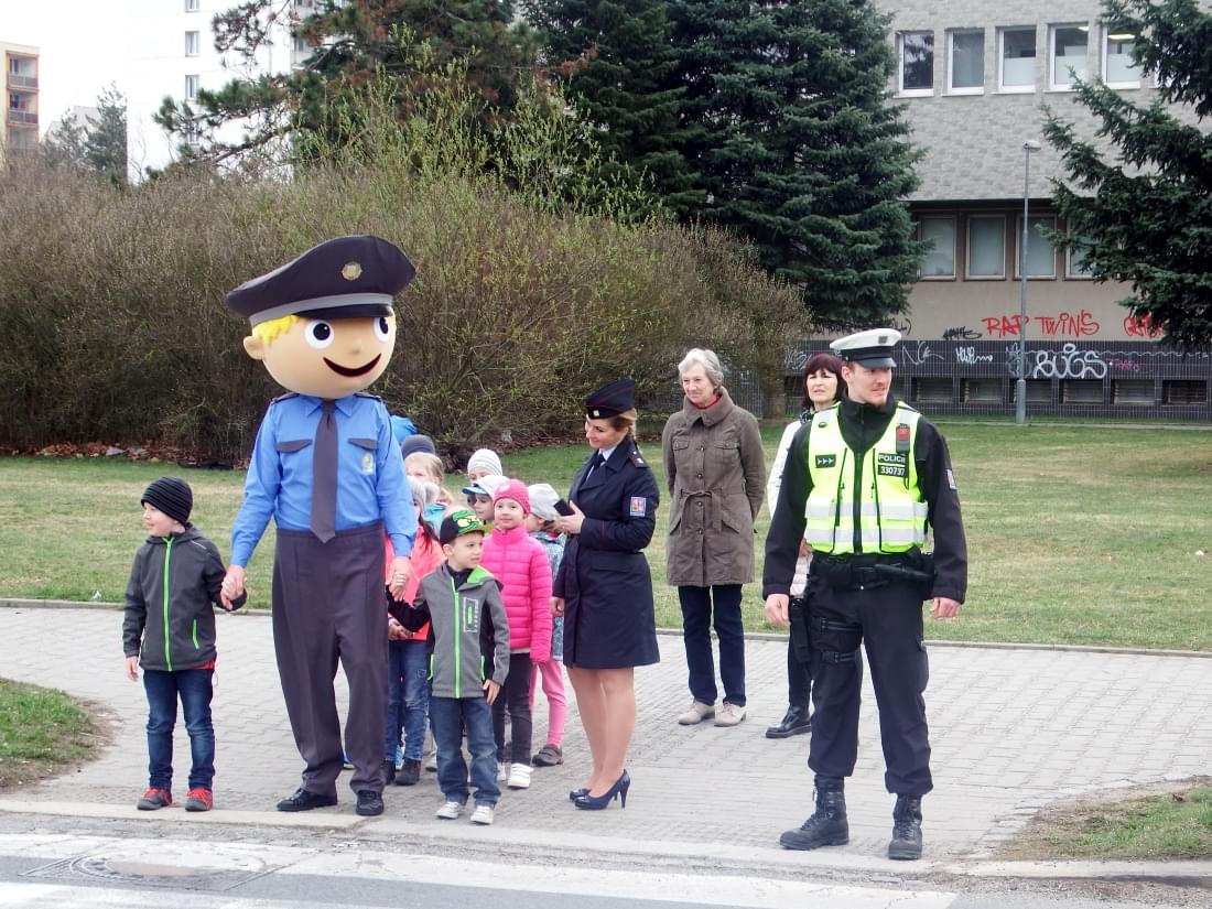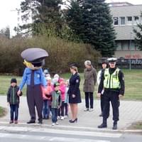 Tisková mluvčí policie k akci uvedla: "Protože praxe je nejlepší „učitel“, vyzkoušeli jsme si se žáky nabyté vědomosti přímo na přechodu pro chodce, kde jsme pro děti připravili malé překvapení. Policisté z Krajského ředitelství policie Plzeňského kraje od letošního roku disponují svým vlastním maskotem obřího policisty, kterého jsme na dnešní akci poprvé představili veřejnosti. Řidiče na přechodu pro chodce tak čekali nejen malí účastníci silničního provozu, ale i „velký“, živý policejní maskot, kterého děti po splnění všech zásad správného přecházení, bezpečně dovedly na druhý konec „zebry“.