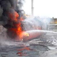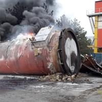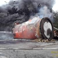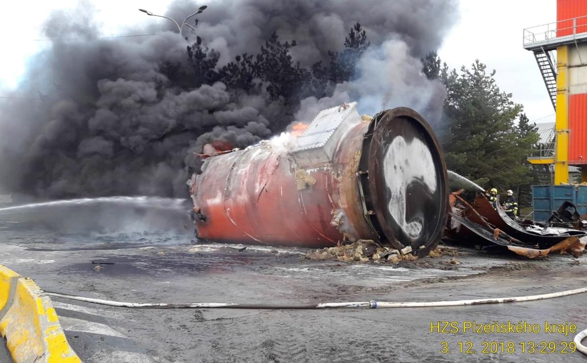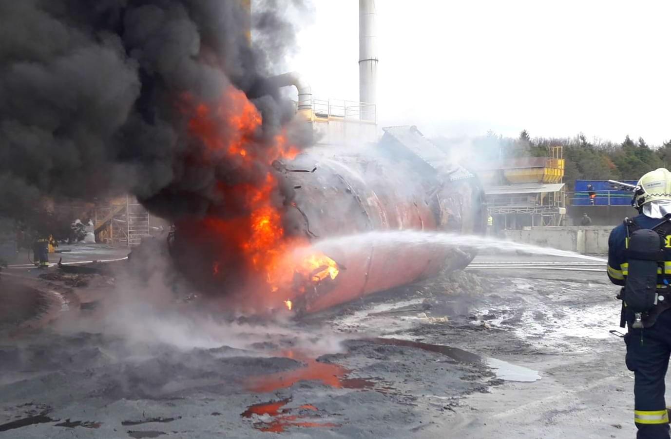 Na místě právě v tuto chvíli zasahují hasiči ze stanic Slovany a Střed, na cestě je i vozidlo hasičů z Košutky, vybavené několika 50kg práškovými hasicími přístroji, které jsou pro hašení tohoto typu požáru nejvhodnější a také speciální hasicí přístroj Cobra. Dle mluvčího hasičů k iniciaci požáru došlo při rozebírání nádrže rozpalovacím zařízením, nejspíše autogenem. Odhadované množství asfaltu uvnitř je cca 500Kg a jde o zbytky ulpěné na stěnách a dně.