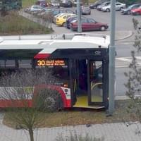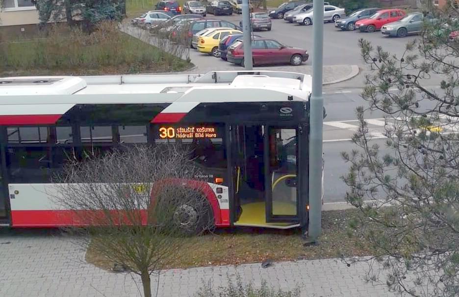 12:47 V Těšínské ulici v Plzni ve směru do centra havaroval autobus do sloupu, když šel jeho řidič zkontrolovat cestující, která upadla, a špatně vůz zajistil. Havárie se obešla bez zranění.