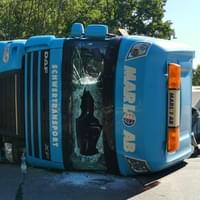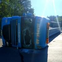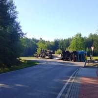 "Řidič narozený v roce 1972 jel od Holoubkova na Volduchy, při odbočení na křižovatce nepřizpůsobil rychlost a se soupravou se převrátil na bok. Dechová zkouška vyšla u řidiče s negativním výsledkem a byl na místě vyřešen v příkazním řízení," uvedla tisková mluvčí policie.
