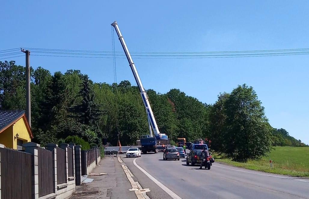 Při havárii naštěstí nedošlo ke zranění osob a křižovatka byla s opatrností průjezdná. V současné chvíli je ale trasa na Holoubkov uzavřena z důvodu vyprošťování. K přeložení několikatunového nosníku totiž musel být povolán jeřáb.