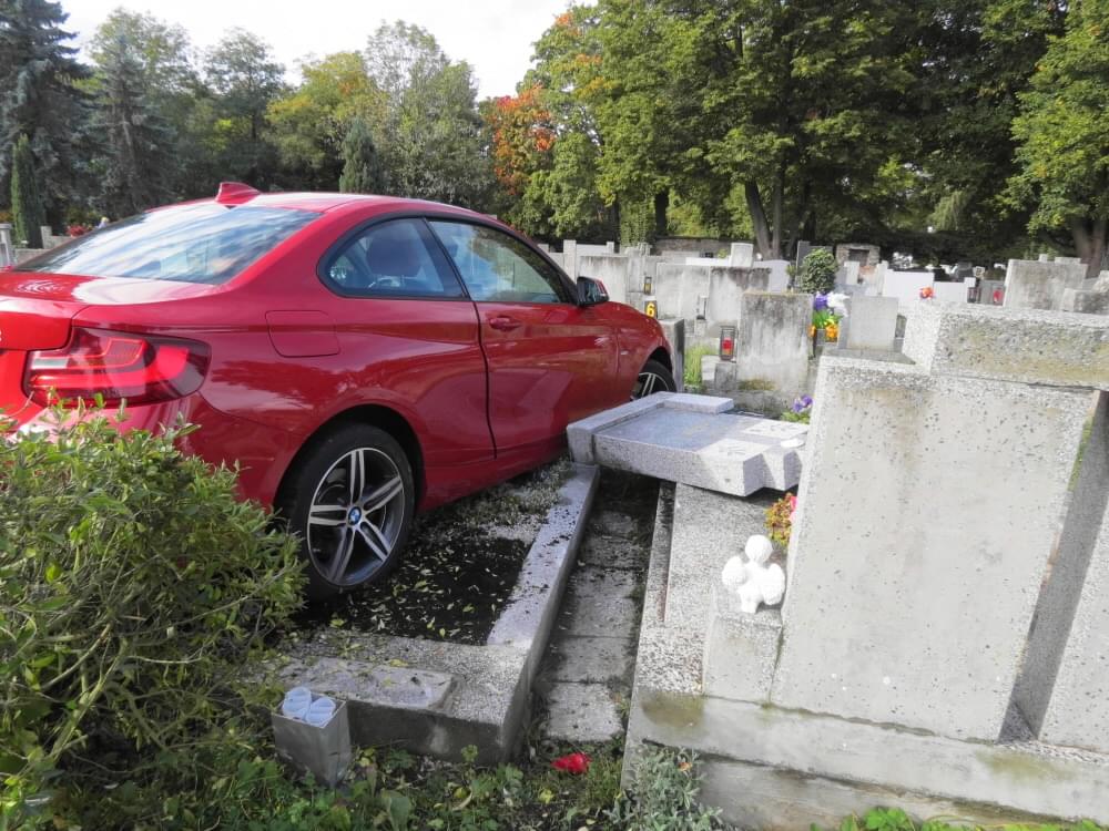 "Sedmašedesátiletá žena chtěla ve čtvrt na jedenáct zaparkovat s vozem BMW na parkovišti u hřbitova v Nýrsku, při zastavování omylem sešlápla plynový pedál, vozidlo se rozjelo vpřed a najelo do několika hrobů," popsala tisková mluvčí policie.