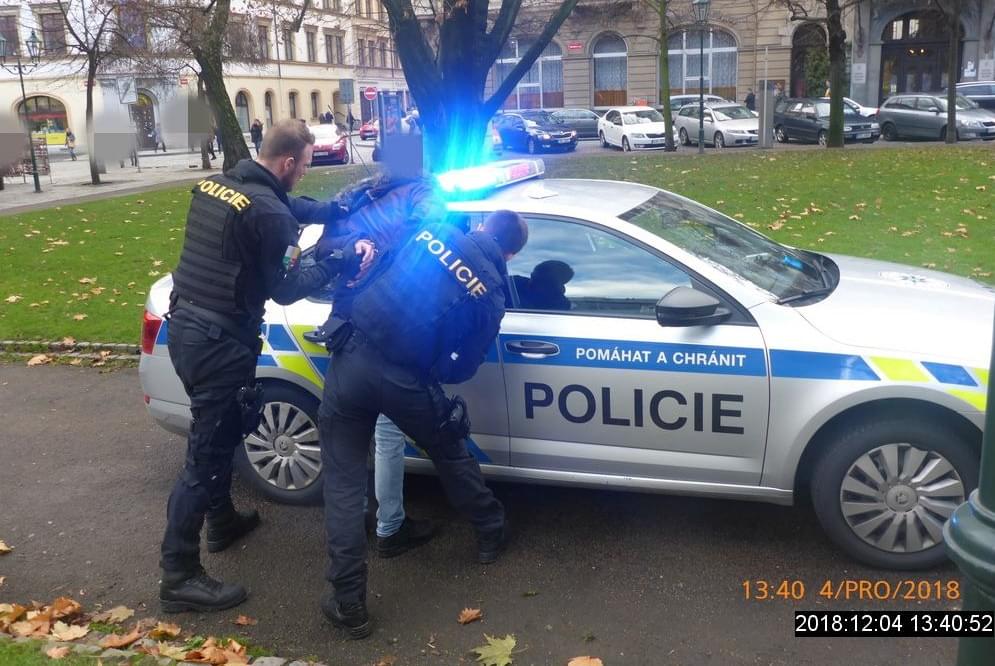 Hlídka ve složení strážník a technik vůz sledovala až do Husovy ulice, kde auto zastavilo na parkovišti u Národní banky. Osádka vozidla poté vystoupila a muž odcházel pryč.