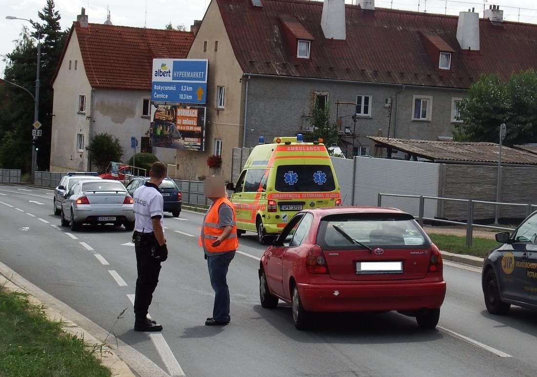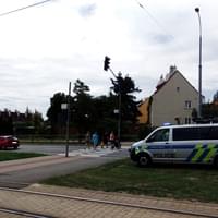 Dnes kolem jedné hodiny odpoledne došlo na přechodu pro chodce na Karlovarské ulici u tramvajové zastávky U Družby ve směru do centra k dopravní nehodě, při které osobní automobil Toyota Corolla srazil starší ženu.