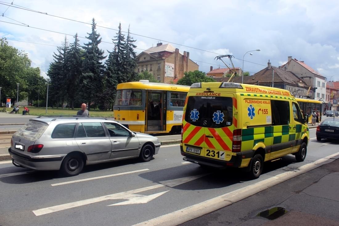 Dnes po půl druhé odpoledne došlo na Klatovské třídě v Plzni na úrovni tramvajové zastávky Masarykovo náměstí k dopravní nehodě, při které osobní automobil jedoucí ve směru na Bory srazil chodkyni.