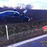 K další nehodě došlo o pár minut později na silnici mezi Dobřany a Šlovicemi, u sjezdu na Dobřany, kde došlo ke střetu dvou osobních aut. Nehoda je naštěstí bez zranění a bez úniku provozních kapalin.