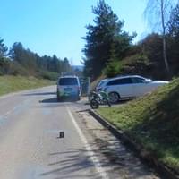 O dvě hodiny později se dopravní policisté museli přesunout na Radnicko, kde sedmačtyřicetiletý řidič vozidla Audi jedoucí po silnici II. třídy č. 233 v Hlohovicích začal odbočovat vlevo a přehlédl v protisměru sedmašedesátiletého cyklistu. Došlo ke střetu, cyklista přeletěl kapotu vozidla a zůstal ležet na přilehlém travnatém pásu. Na místo vyjely záchranné složky a zraněného cyklistu si do péče převzali záchranáři.