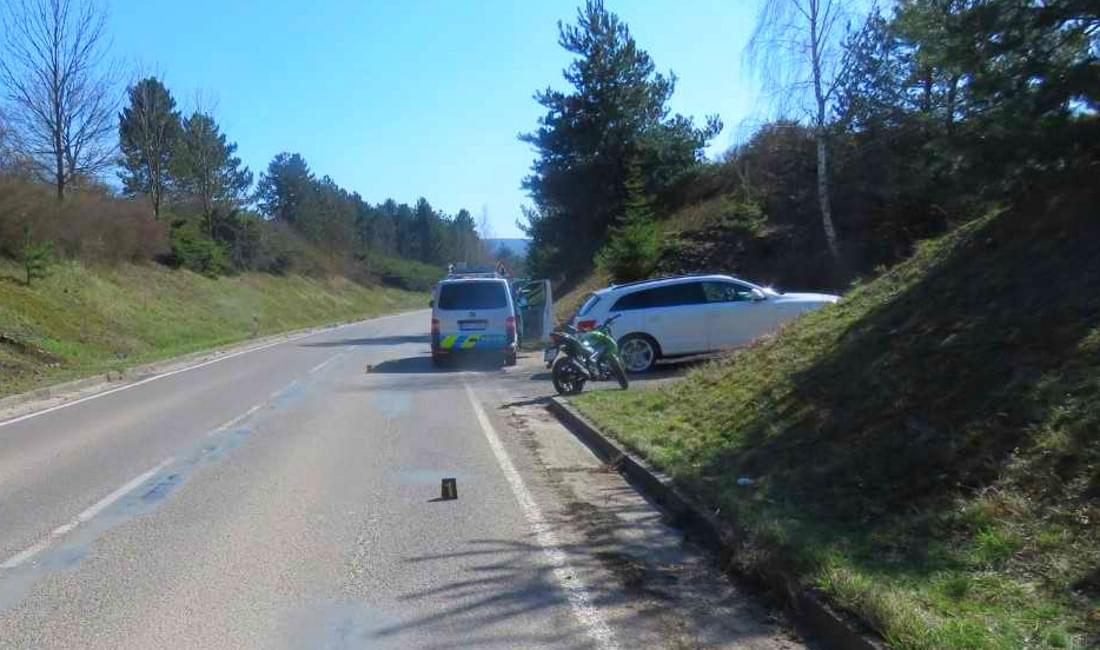 K první oznámené nehodě vyjížděla hlídka dopravních policistů po druhé hodině odpoledne. Policisté na místě zjistili, že sedmadvacetiletá řidička ve voze Audi jela po silnici III. třídy č. 2326 ve směru od Rokycan na Litohlavy a odbočovala vlevo. Bohužel v té chvíli jel za vozidlem sedmnáctiletý řidič na motocyklu Kymco a Audi předjížděl. Došlo tak ke střetu levé přední části vozu s pravým bokem motocyklu a pádu motocyklisty na zem.