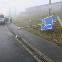 Zatím nezjištěný řidič osobního vozu Mercedes Benz jedoucí z centra Horšovského Týna směrem na Domažlice při výjezdu z kruhového objezdu vjel na pravý okraj komunikace, vyjel vpravo mimo komunikaci, kde narazil do sloupu veřejného osvětlení.