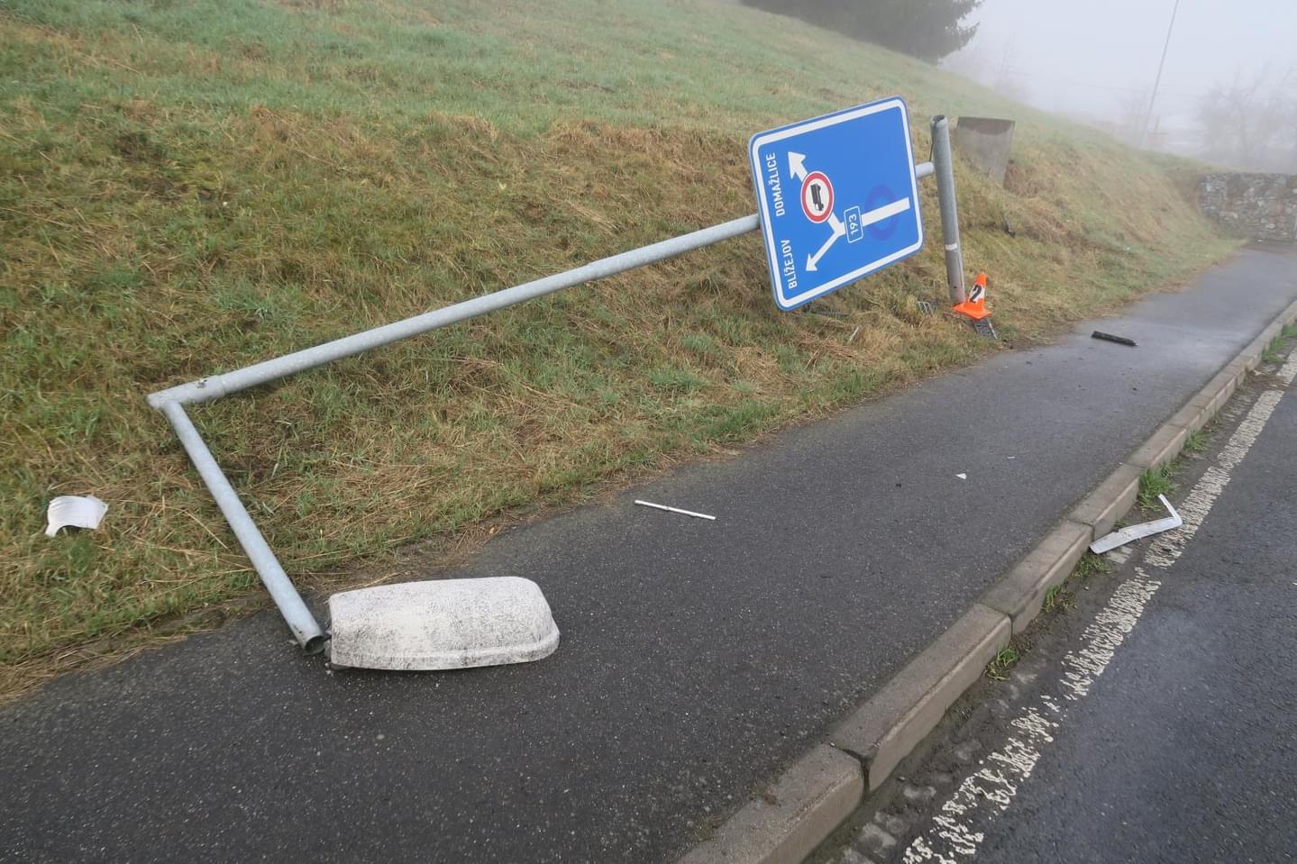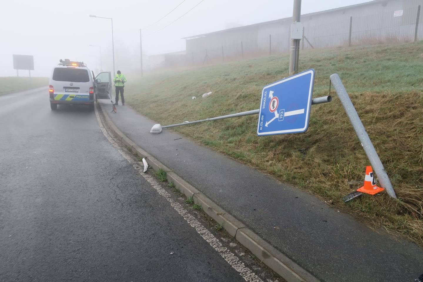 Zatím nezjištěný řidič osobního vozu Mercedes Benz jedoucí z centra Horšovského Týna směrem na Domažlice při výjezdu z kruhového objezdu vjel na pravý okraj komunikace, vyjel vpravo mimo komunikaci, kde narazil do sloupu veřejného osvětlení.