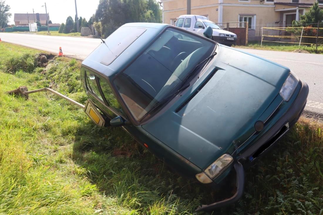 "Třiapadesátiletý řidič osobního vozidla tovární značky Škoda Felicia jedoucí ve směru od obce Horšovský Týn do obce Horšov při jízdě vjel na pravý okraj pozemní komunikace a narazil do dopravní značky Hlavní pozemní komunikace. Poté sjel s vozidlem do silničního příkopu," popsala tisková mluvčí policie.