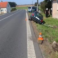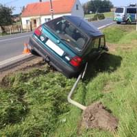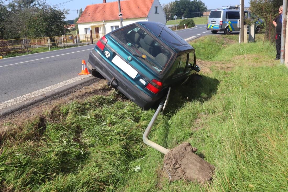 Včera v poledne došlo na silnici v Horšově k havárii, při které řidič vozem srazil značku a i s autem skončil v příkopu.