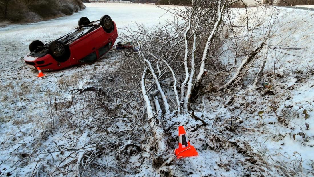 "Šestašedesátiletá řidička při řízení osobního vozidla Škoda Fabia od Domažlic na Horšovský Týn nepřizpůsobila rychlost jízdy a při projíždění pravotočivé zatáčky dostala na zasněženém, neposypaném povrchu silnice smyk," popsala tisková mluvčí policie s tím, že dechová zkouška na alkohol byla u řidičky negativní.
