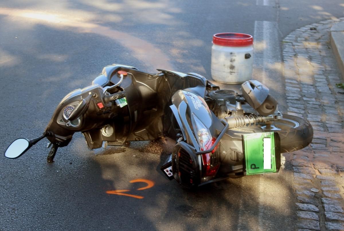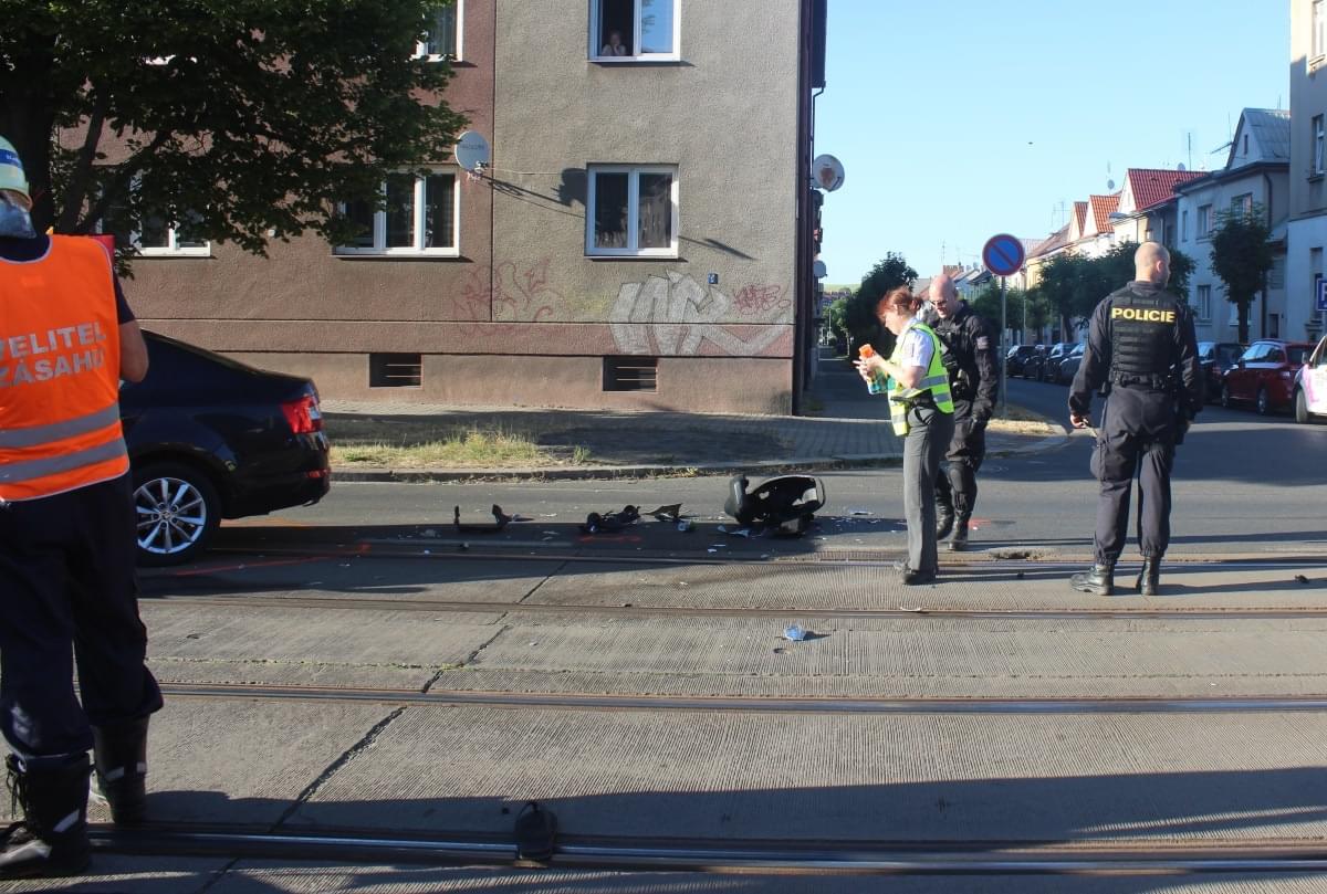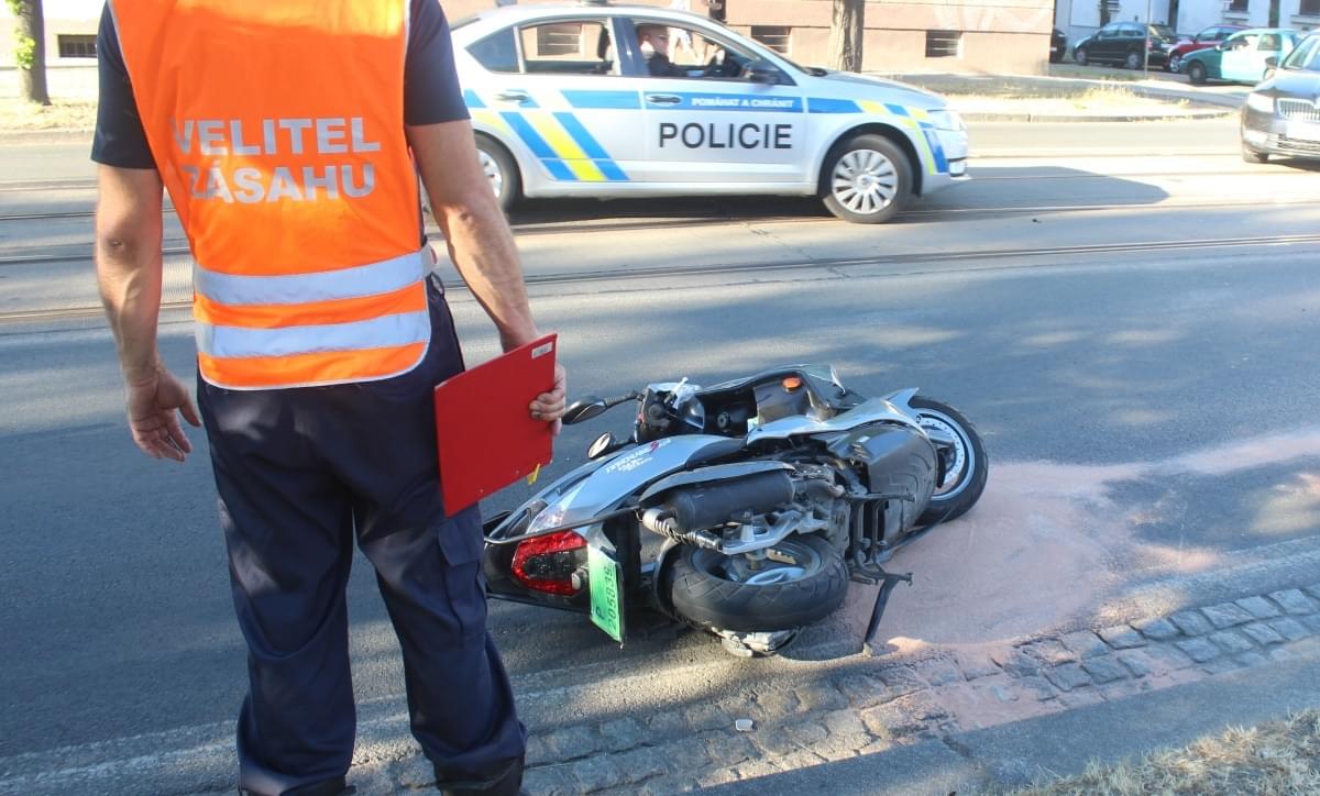 Jak k nehodě došlo zatím na místě vyšetřují policisté, ale dle všeho skůtrista narazil do zadní části před ním jedoucího vozu a stroj dle převozních značek zřejmě nemá dlouho.