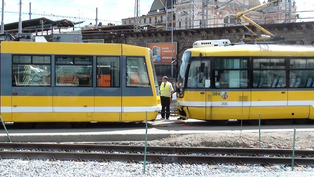 Dnes dopoledne v půl dvanácté došlo ke střetu tramvají č. 1 a 2 na křižovatce ulic Americká x Mikulášská x Sirkova, kde mají průjezd umožněný pouze tramvaje z důvodu rekonstrukce mostu u vlakového nádraží.