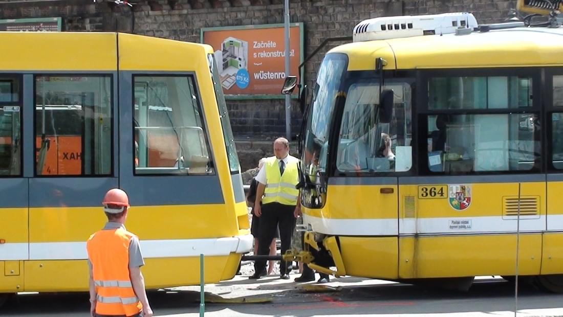 Řidička tramvaje č. 2 jedoucí ze směru Slovany na Skvrňany zřejmě nedobrzdila a narazila do tramvaje jedoucí před ní, která také jela ze Slovan.