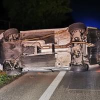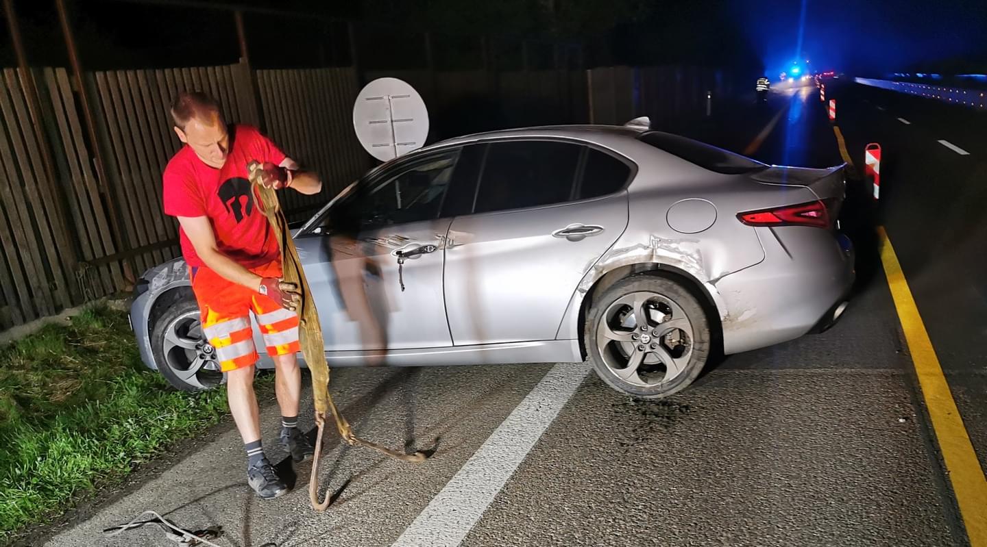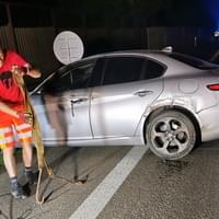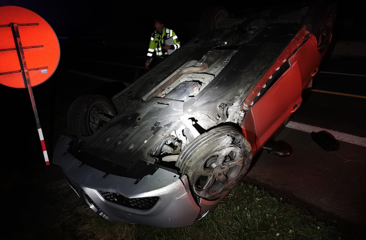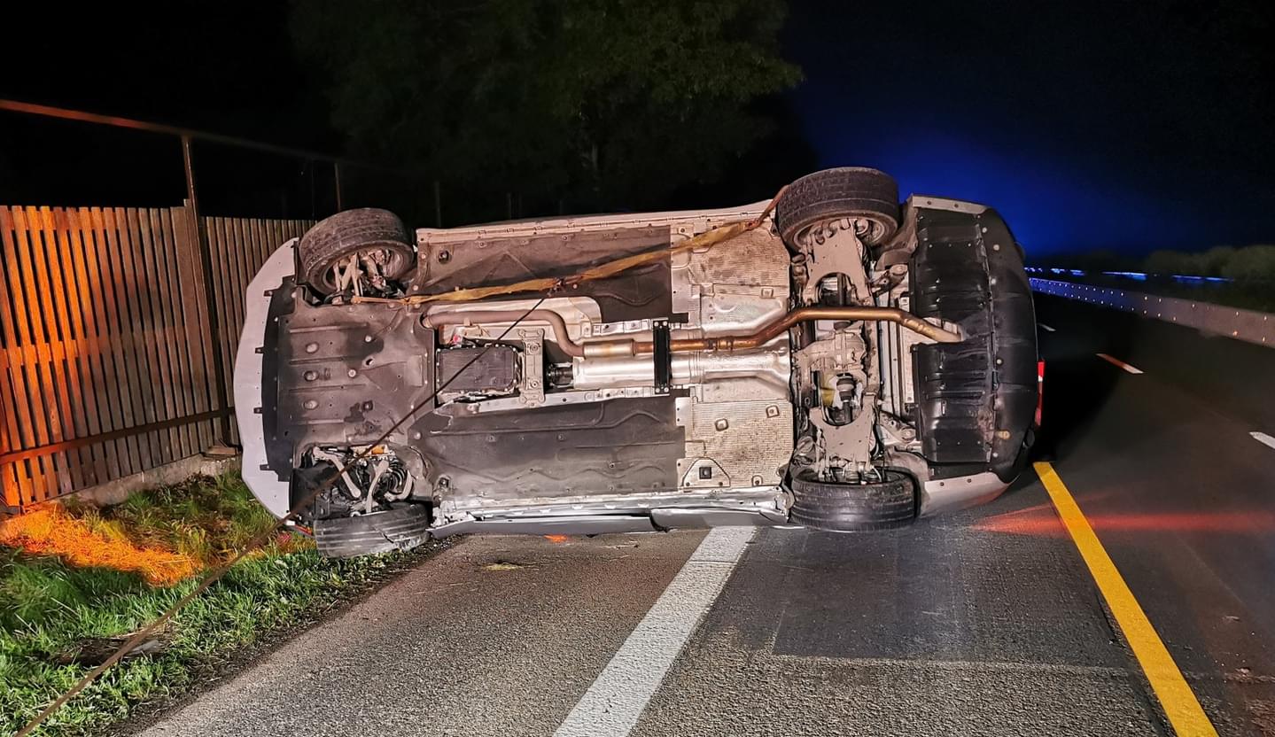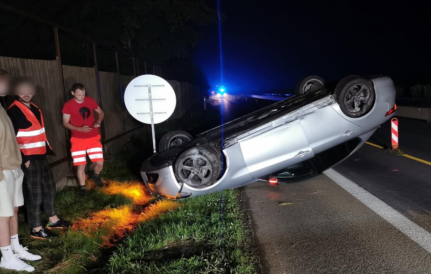 V noci na dnešek kolem druhé hodiny ráno došlo v Plzni na přivaděči k dálnici D5, před odbočkou na Chrást a Starý Plzenec, k havárii Alfy Romeo, která nejprve dostala smyk, narazila do plotu pozemku sousedícího se silnicí a poté se převrátila.