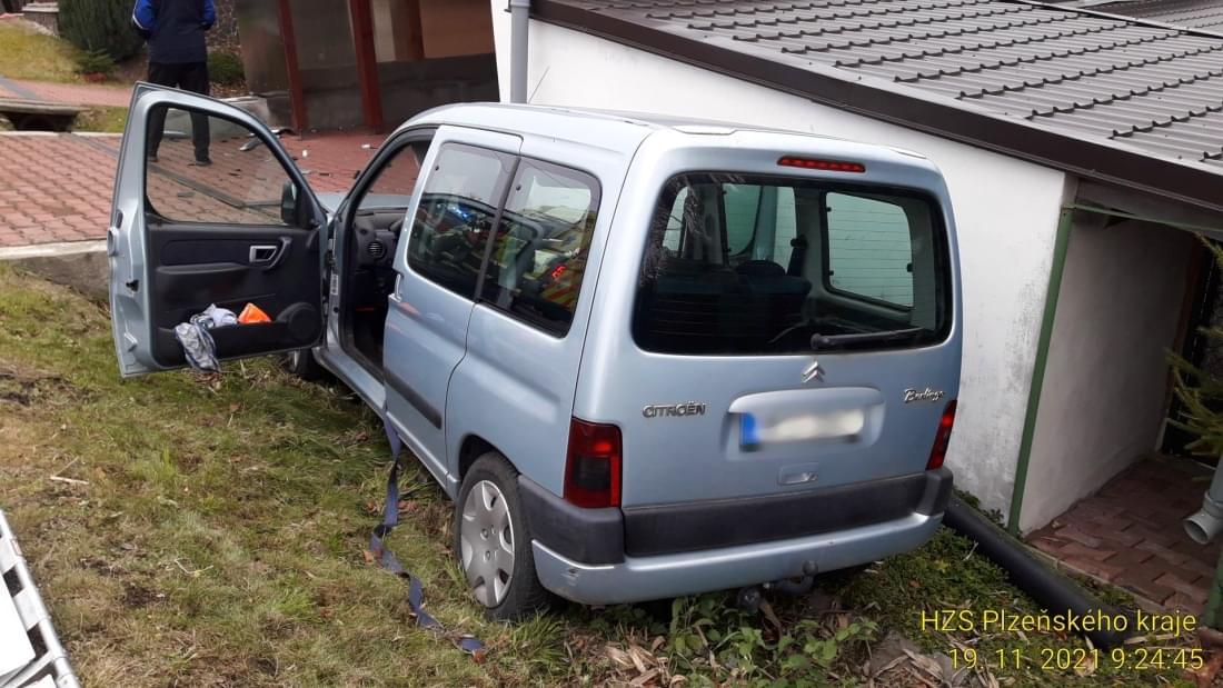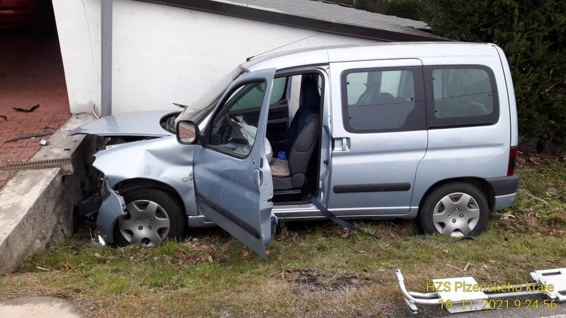 Dnes kolem deváté hodiny dopoledne došlo mezi Pláněmi a Všeruby na Domažlicku k havárii osobního vozu Citroen Berlingo. Starší řidič s vozem ze zatím neznámého důvodu vyjel mimo silnici a narazil do mostku ke garáži rodinného domu.
