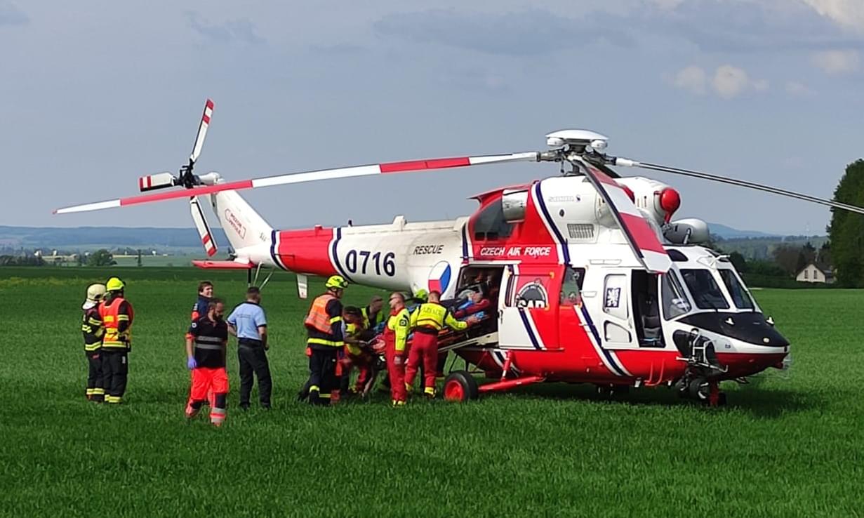 Z místa bylo hlášeno vážné zranění jezdce, takže k nehodě vyjely všechny záchranné složky a byl povolán i vrtulník letecké záchranné služby.