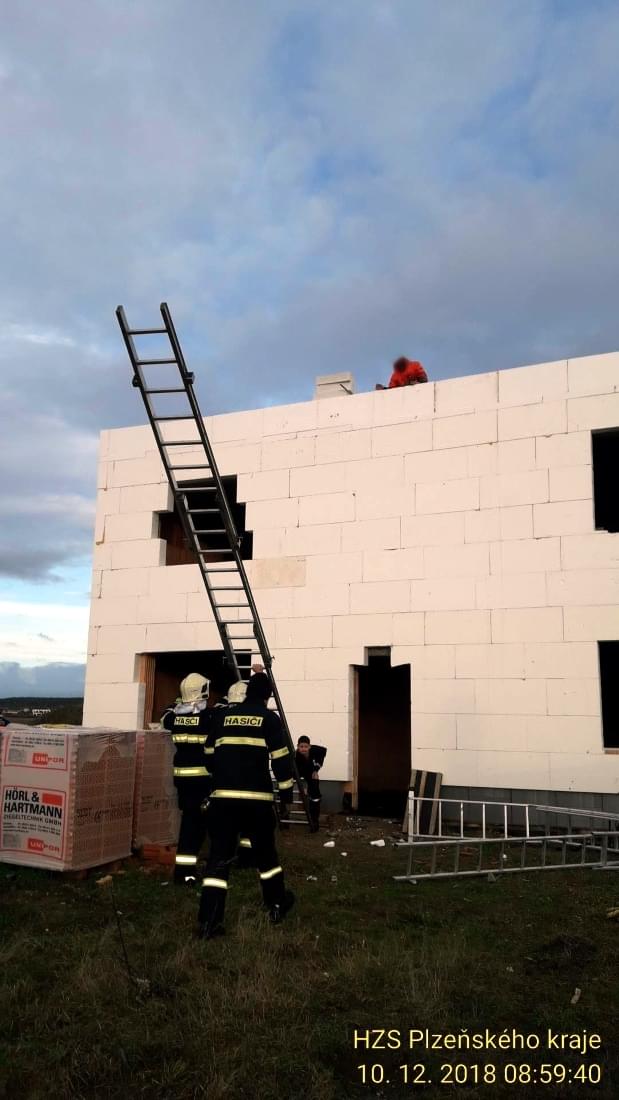 Dalšího muže museli pomocí žebříku ze stavby vysvobodit hasiči.
