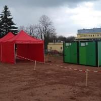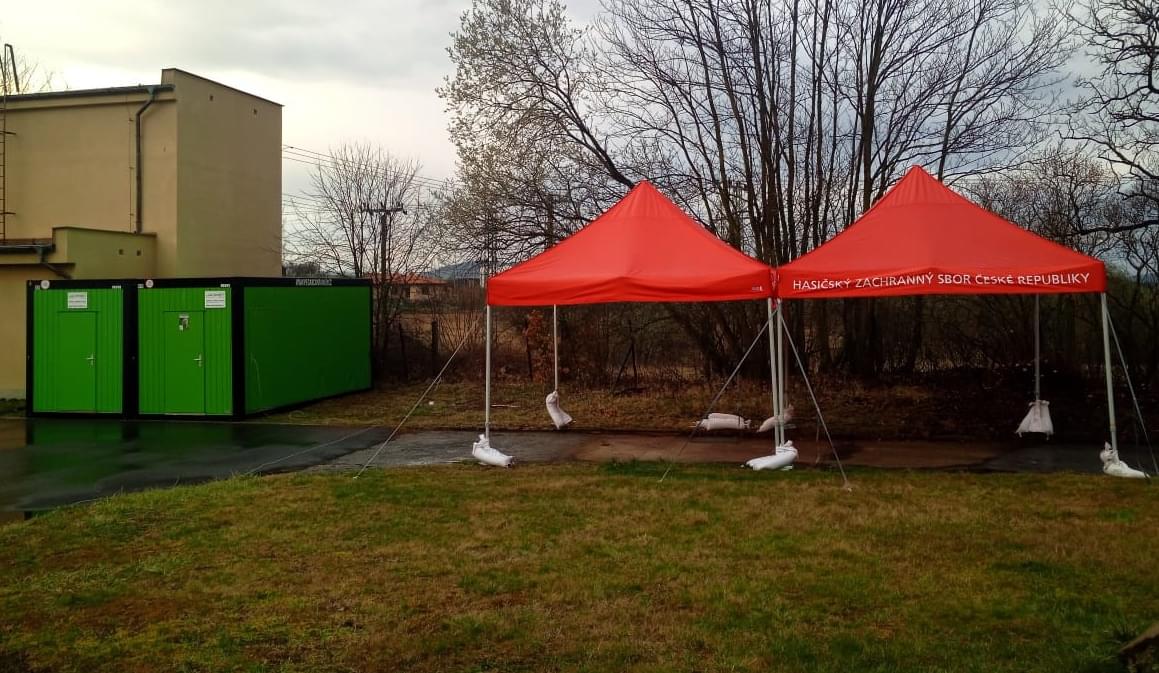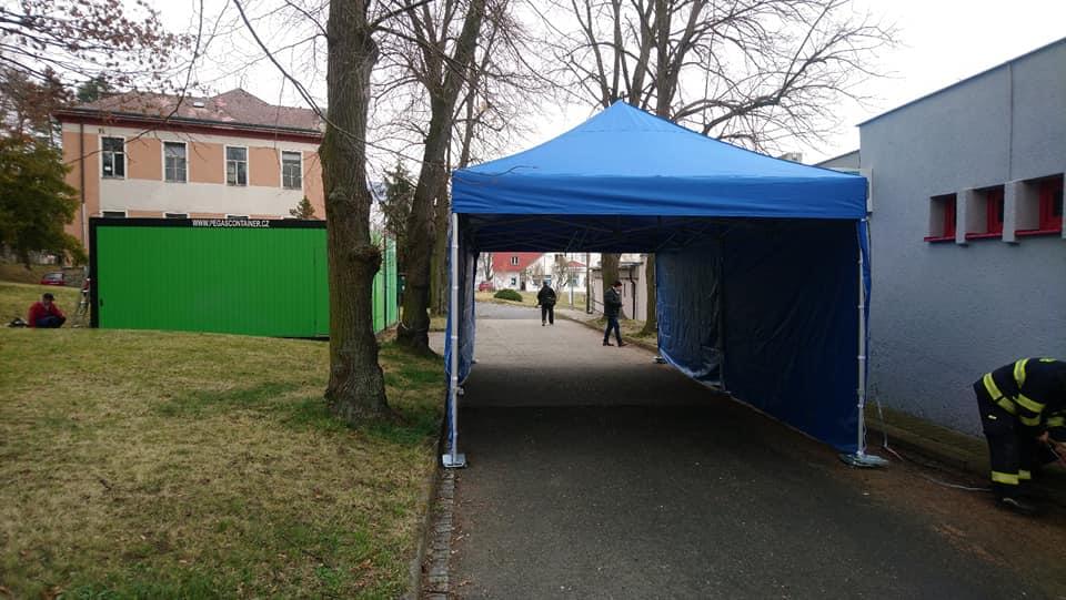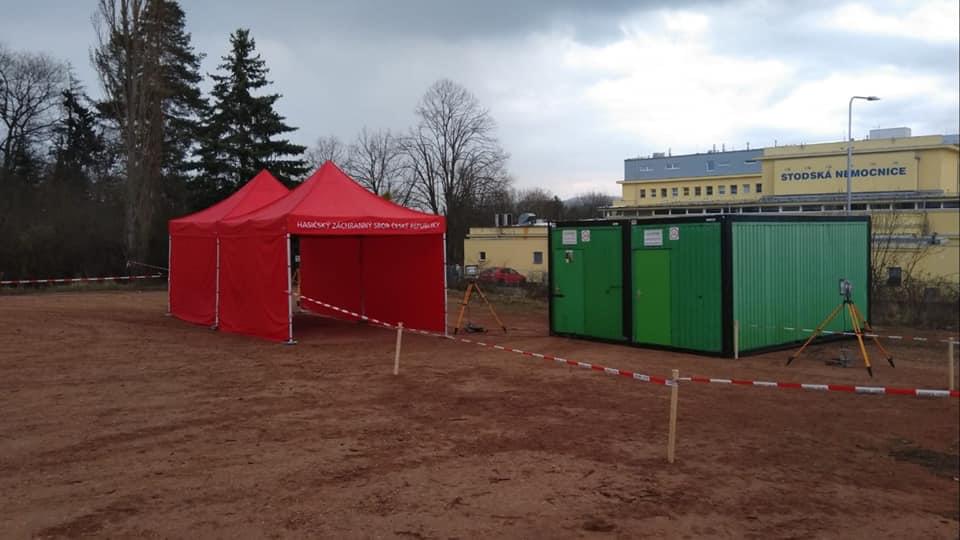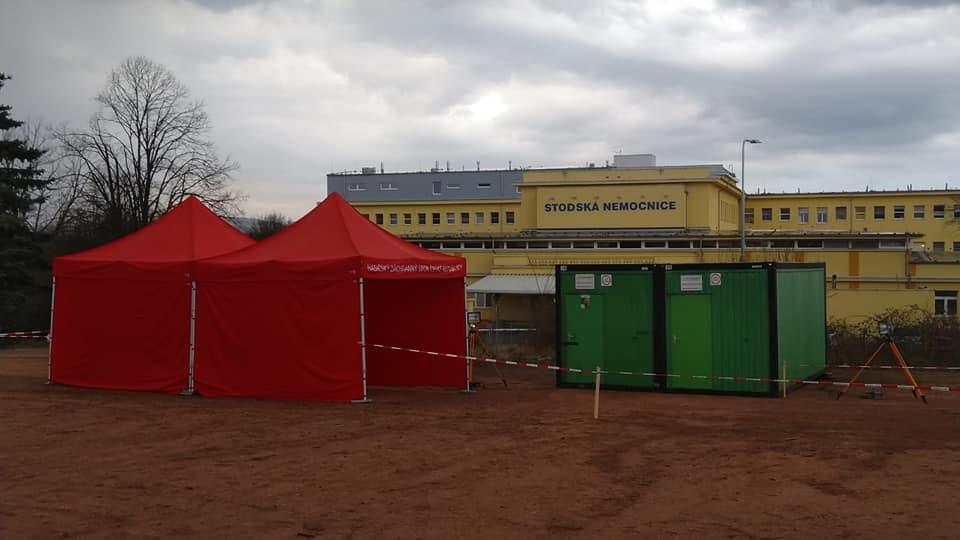 V nemocnici v Rokycanech a v Klatovech hasiči již hasiči dokončili instalaci buněk a průjezdních stanů. Následně zde budou zřízeny místa pro testování nákazy Covid-19.