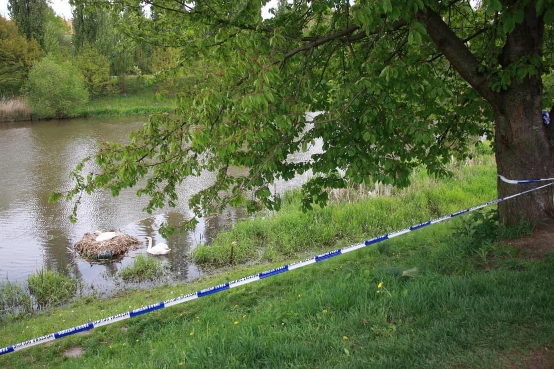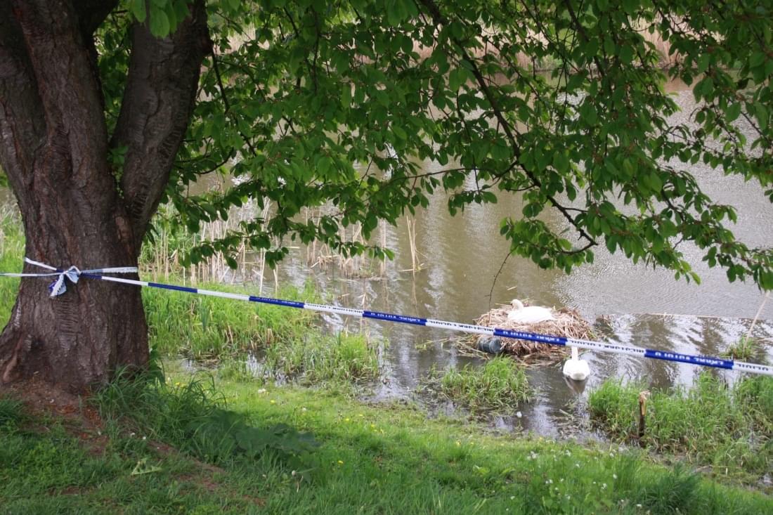 Aby labutě nebyly nijak rušeny a měly klid, zapáskovali strážníci okolí hnizda proti vstupu osob.
