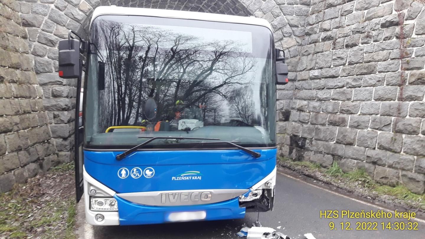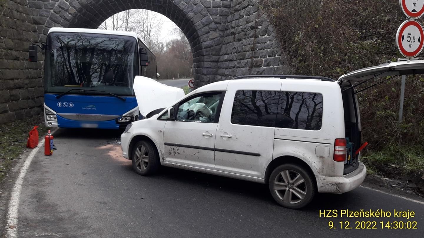 "Řidič autobusu Iveco narozený v roce 1972 nerespektoval před viaduktem dopravní značku Přednost protijedoucích vozidel a nedal přednost protijedoucímu vozidlu značky Volkswagen Caddy řidiče narozeného v roce 2004. Spolujezdkyně z osobního vozidla utrpěla lehké zranění a po ošetření v nemocnici byla propuštěna domů," popsala tisková mluvčí policie s tím, že požití alkoholu bylo u obou řidičů vyloučeno dechovými zkouškami a policisté se nehodou dále zabývají.