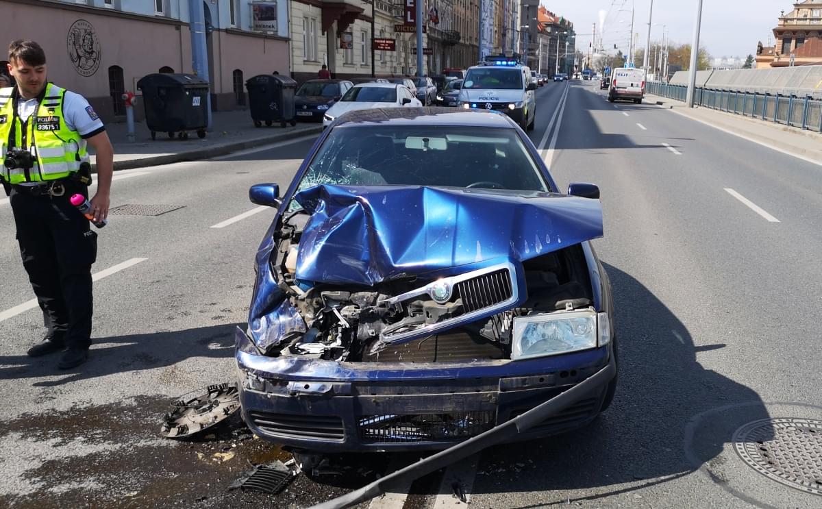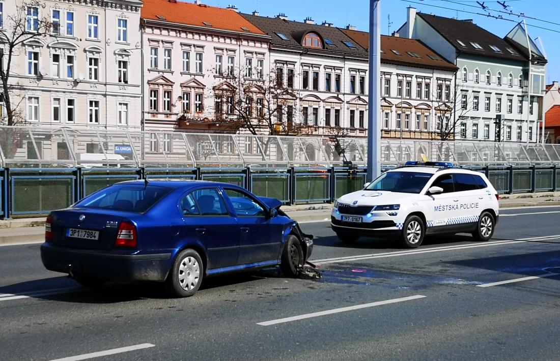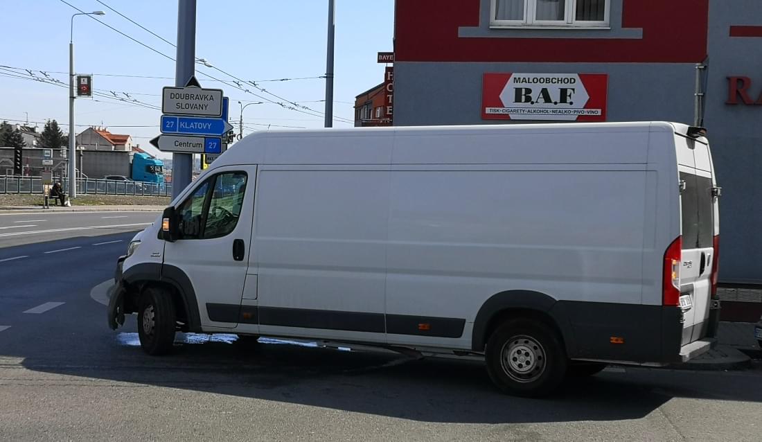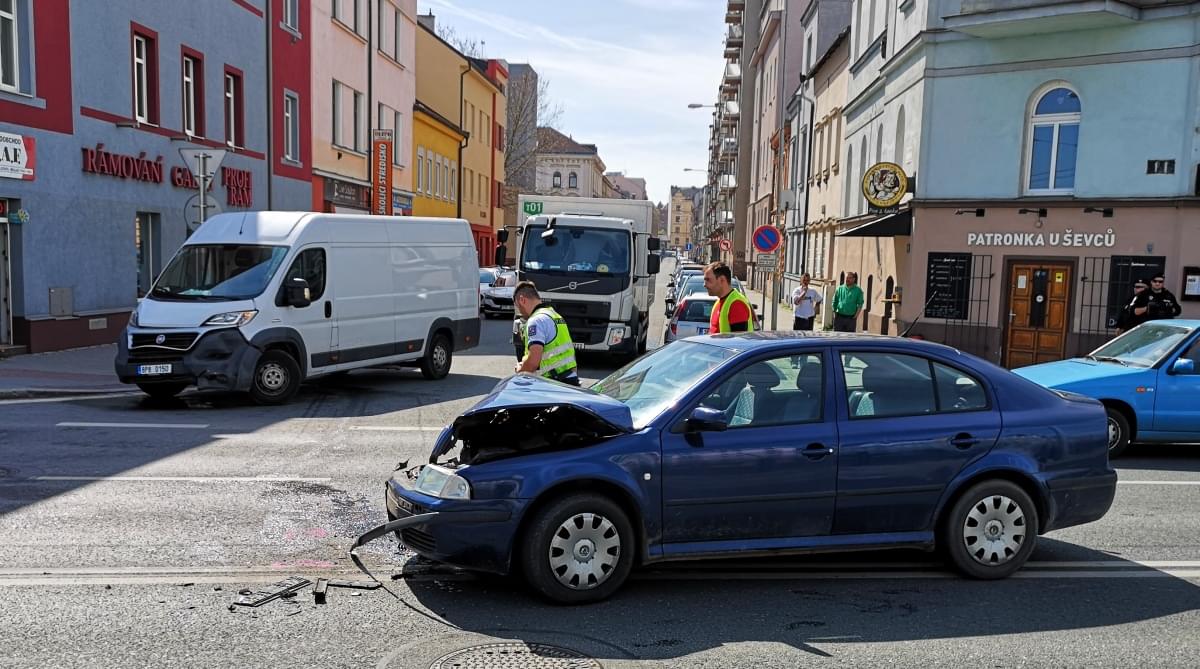 Dnes před polednem došlo ke střetu osobního vozu Škoda s dodávkou rozvozové služby na křižovatce Borské a Hřímalého ulice v Plzni na Borech.