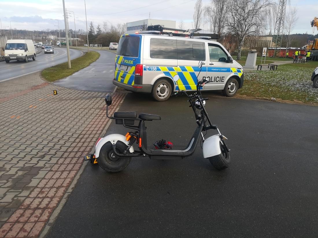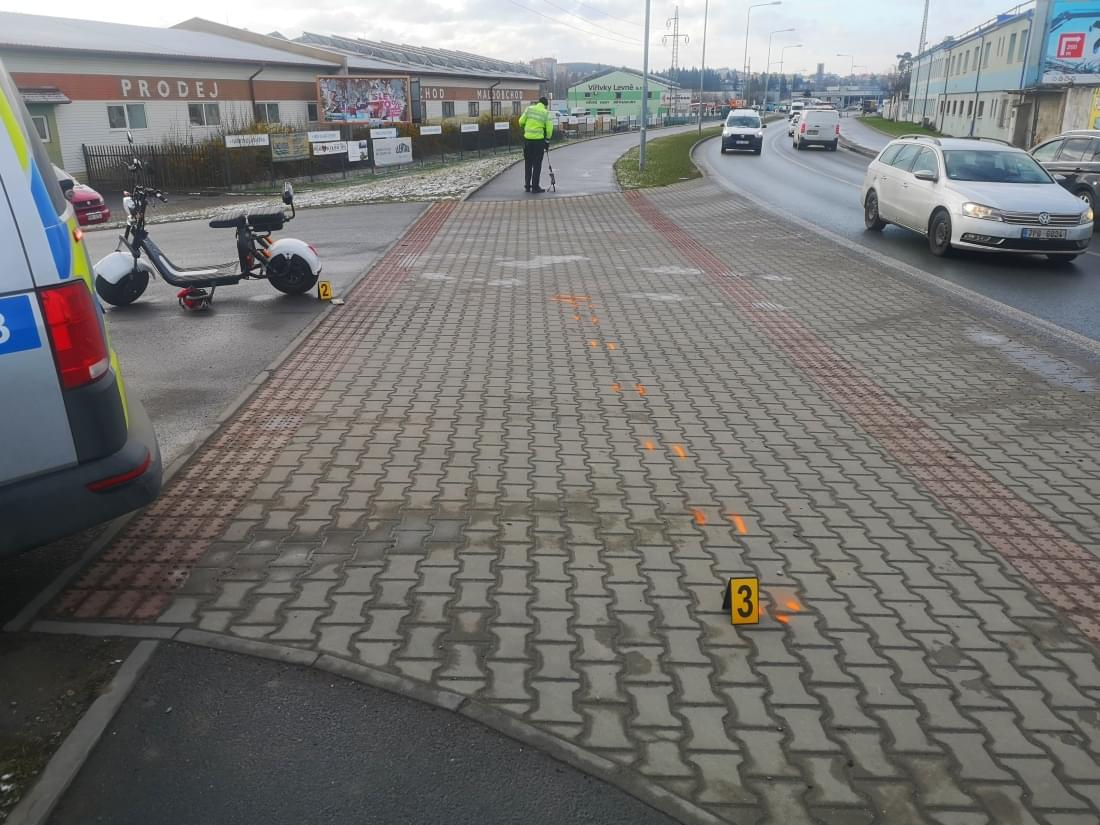 Dnes kolem sedmé hodiny ráno došlo v Plzni na Jateční třídě, na odbočce k firmě Dřevo Trust, ke střetu elektrokoloběžky s vozem Toyota Auris.