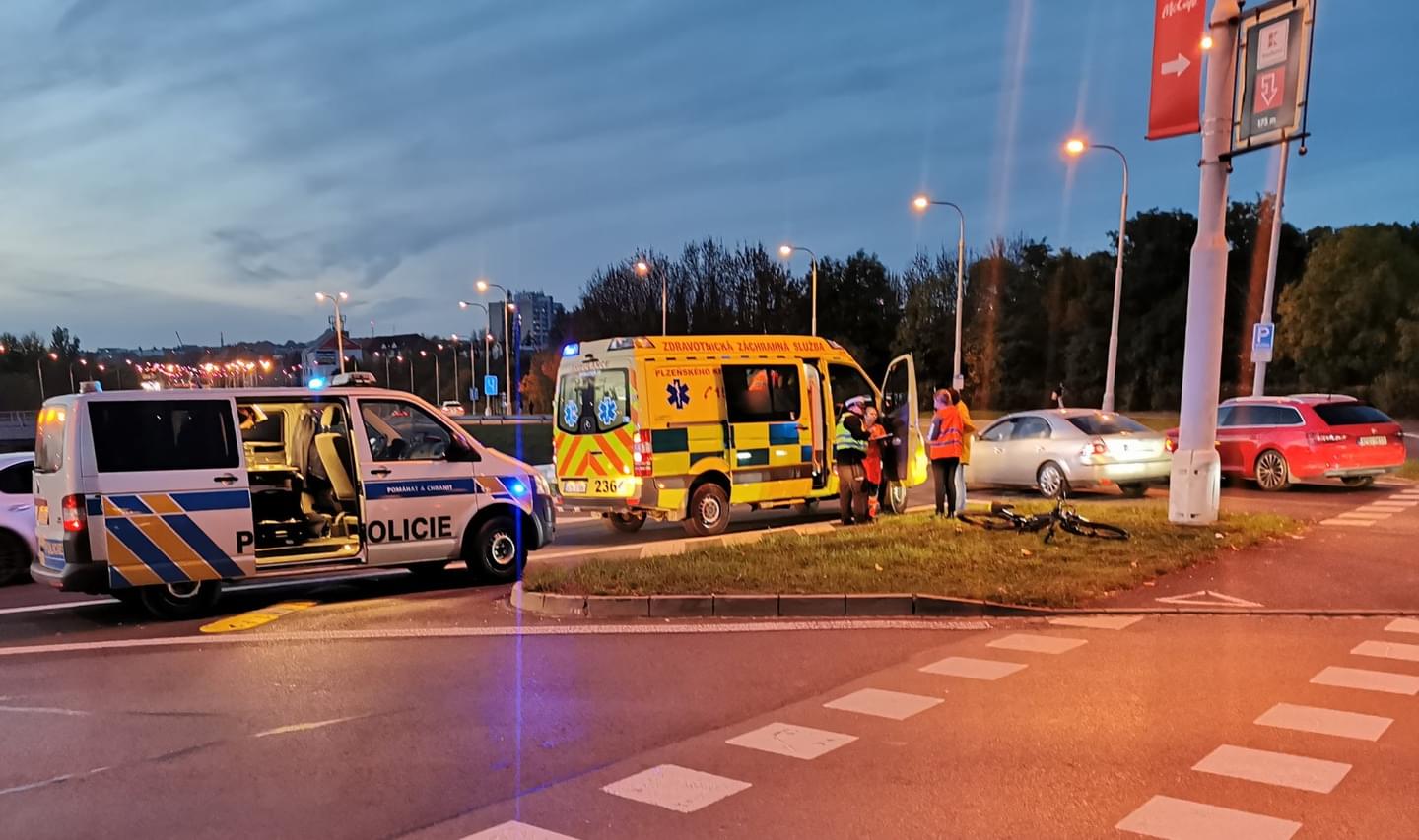 Ve čtvrtek v podvečer došlo na kruhovém objezdu na Rondelu v Plzni ke střetu cyklisty jedoucího na elektrokole s osobním vozem Škoda Superb řízeným ženou. Při nehodě došlo k pádu cyklisty a jeho zranění.