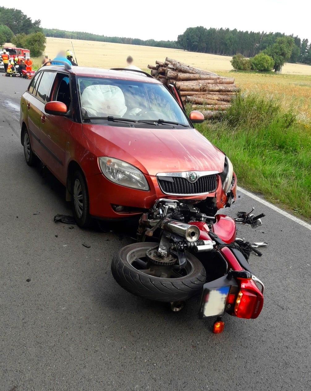 Dnes v půl desáté dopoledne došlo na silnici mezi Městem Touškovem a Líšťany, nedaleko obce Písek, k dopravní nehodě, při které se střetl osobní automobil Škoda s motocyklem Honda. K nehodě vyjely všechny záchranně složky, silnice byla obousměrně uzavřena, hasiči zajistili místo události, poskytli předlékařskou pomoc dvěma zraněným a provedli protipožární opatření. Oba zraněné si následně do péče převzali záchranáři. Do Fakultní nemocnice Lochotín byl transportován pouze motorkář se středně těžkým zraněním.