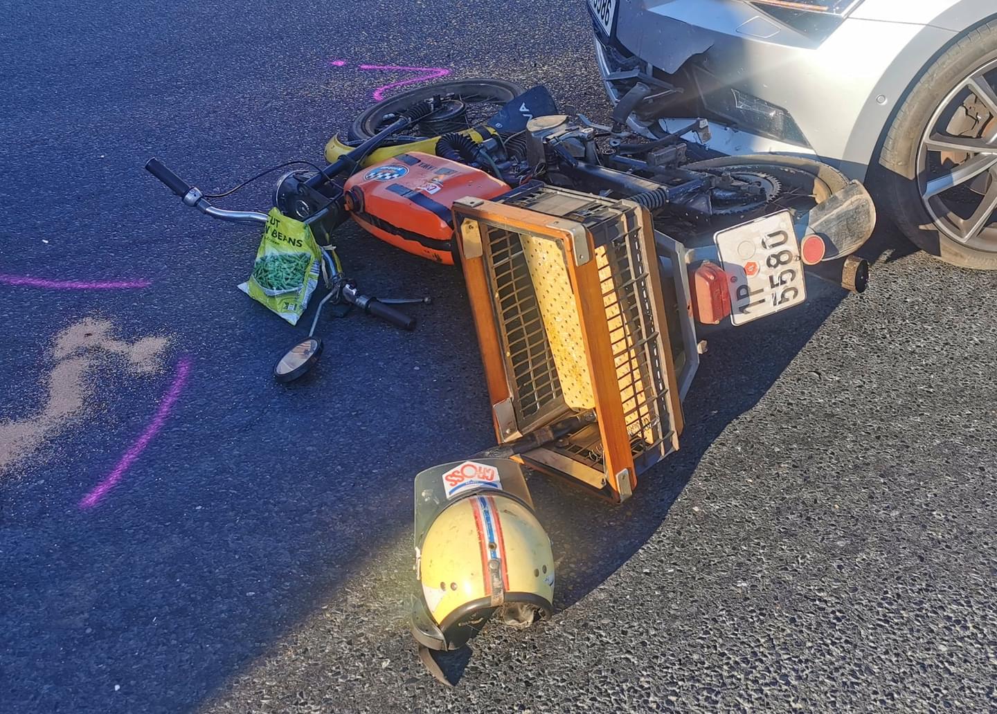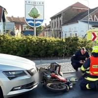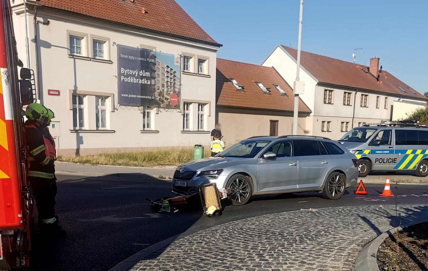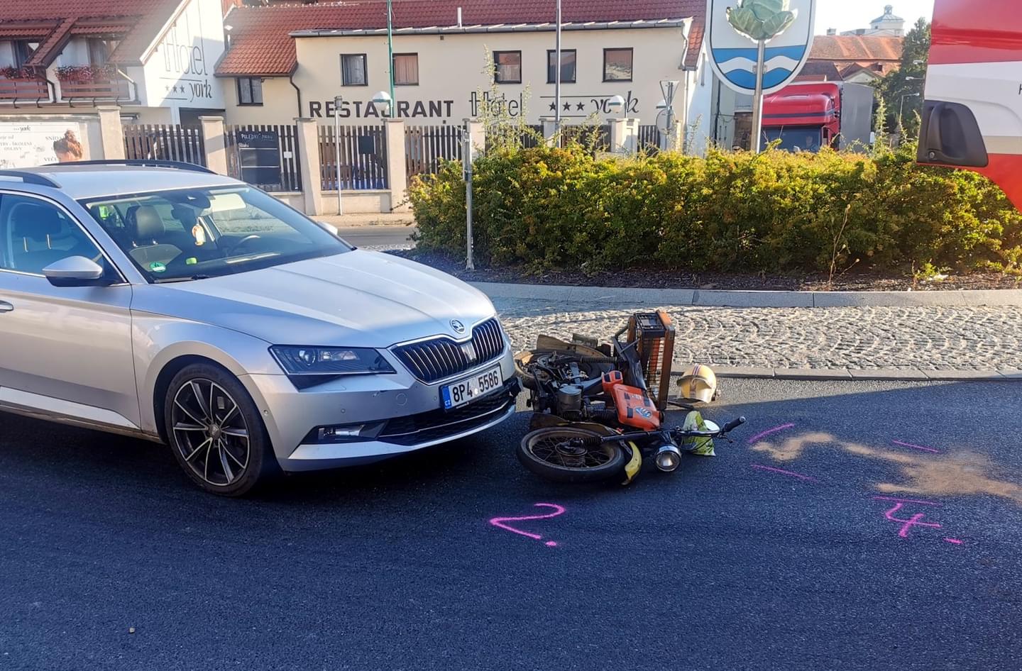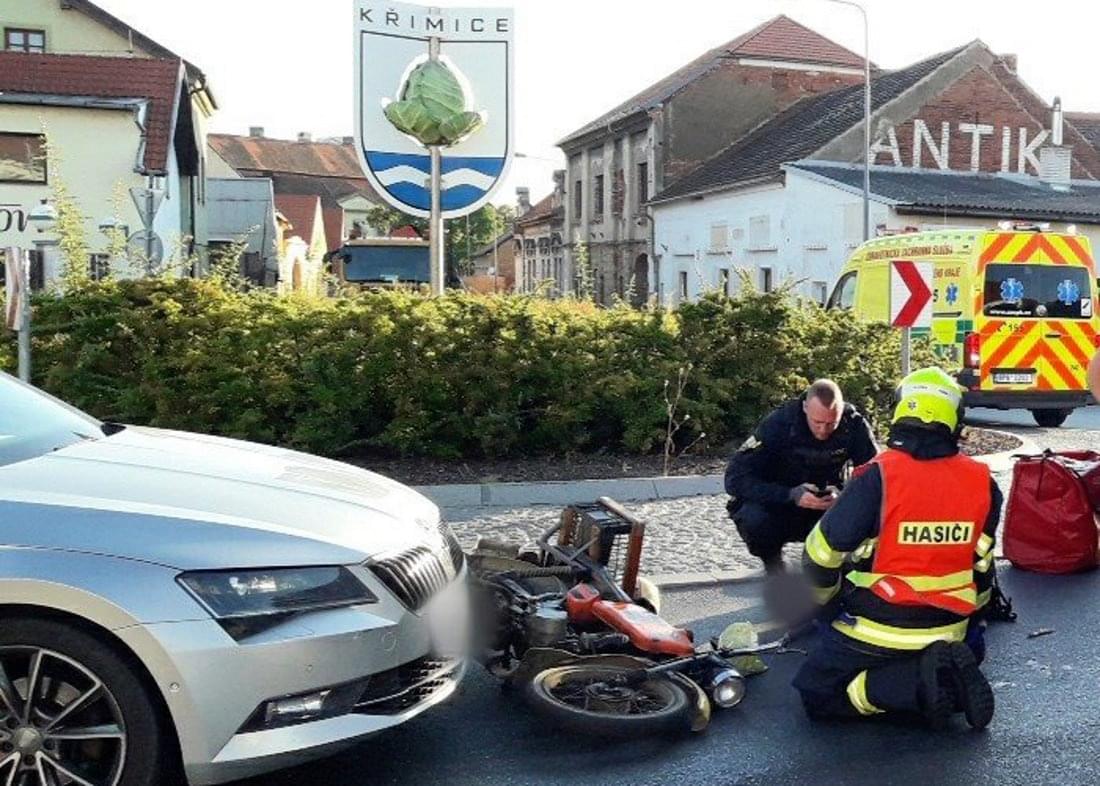 "Řidič vozidla značky Škoda Octavia narozený v roce 1990 nedal při nájezdu na kruhový objezd přednost řidiči motocyklu značky Jawa narozenému v roce 1947, který již jel po kruhovém objezdu. Test na přítomnost alkoholu byl u obou řidičů negativní," uvedla mluvčí policie.Foto KP, HZS