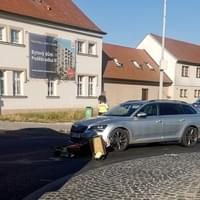 Dnes v sedm hodin ráno došlo na kruhovém objezdu v Plzni Křimicích k dopravní nehodě, při které se střetl motocykl Jawa Mustang s vozem Škoda. Osobní vůz řídil mladý řidič, motocykl senior.