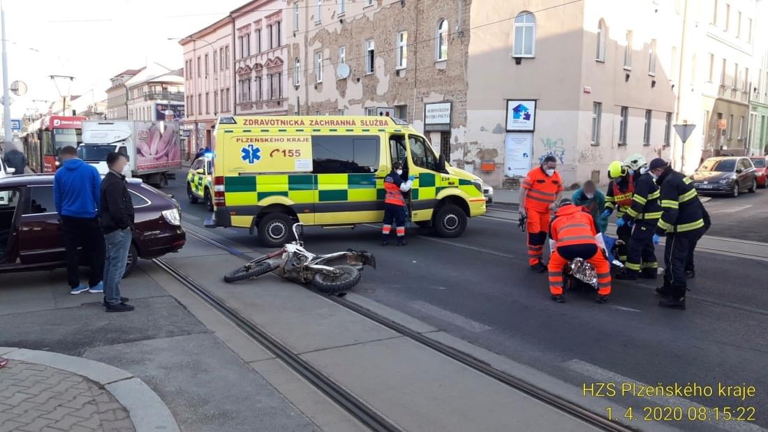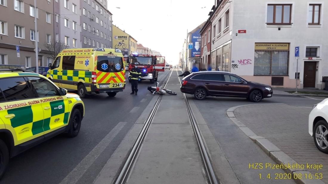 Podle informací z místa jeli oba řidiči směrem do centra, když motorkář předjíždějící kolonu vozů zezadu narazil do osobního vozu odbočujícího vlevo do Jedlové ulice.